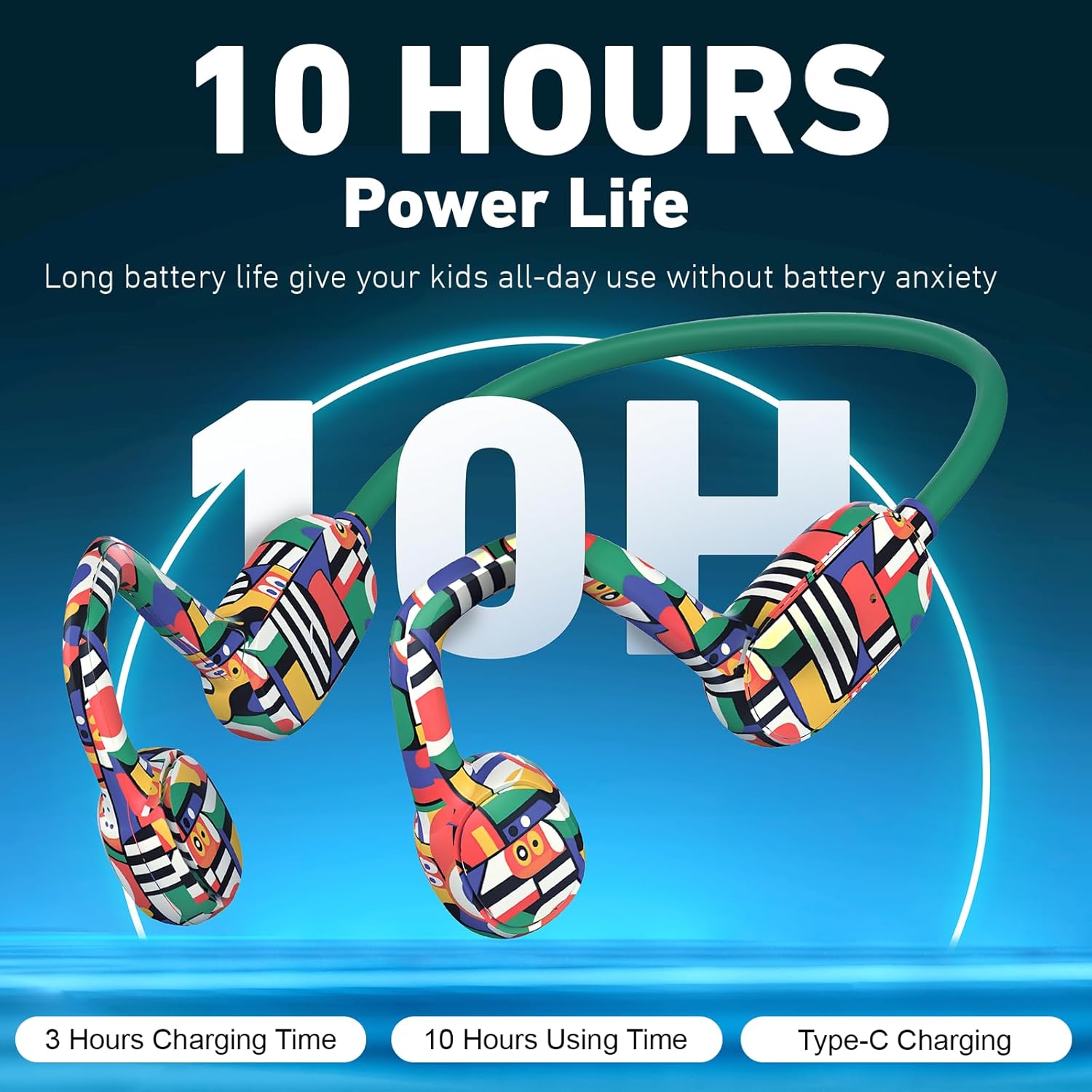 - [Ultra-Safe Design]: Our headphones for kids feature a new generation open-ear design - Air Conduction Technology. They can directional deliver premium audio without muffling kids' ears which can ensure your kids can hear surrounding noise. This special design ensure your kids enjoy unique listening experience while studying at home, school, train, all while avoid some dangerous situations from happening. 85dB volume limitation design fully meets the recommended level to prevent hearing damage.