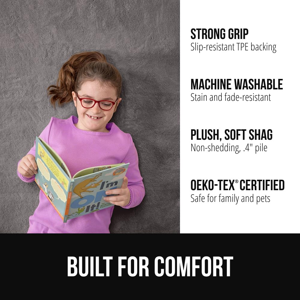 GORILLA GRIP Ultra Soft Washable Area Rug, 6x9, Stain and Slip Resistant Plush Thick Carpet for Bedroom Living Room, No Shed Floor Rugs, Pet Friendly, Dorm Essentials, Kids Nursery Home Decor, Gray