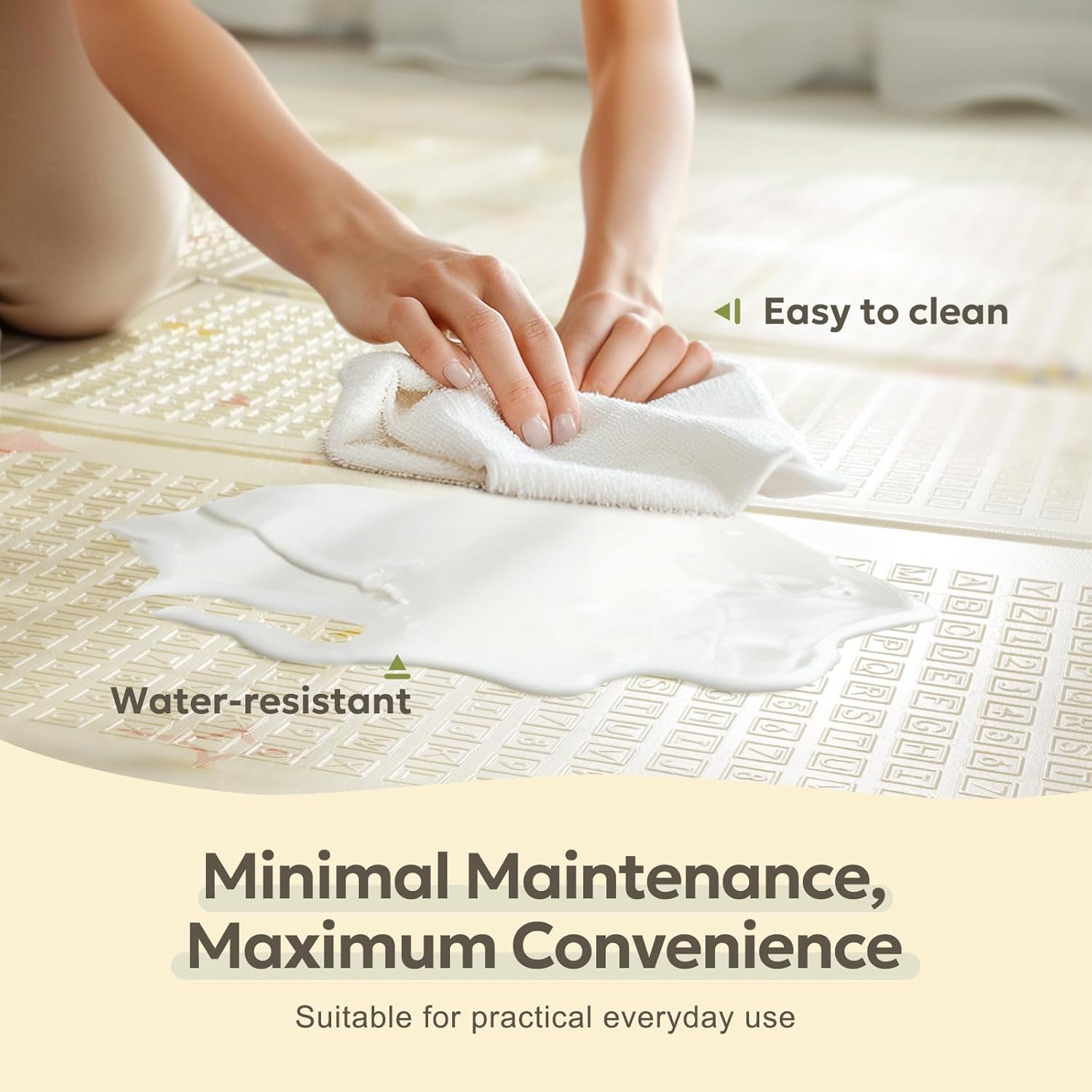 - NON-TOXIC & SAFE MATERIAL: Crafted from premium, high-density XPE foam, our baby mat for floor guarantees peace of mind with its non-toxic, odorless material. Its durable, tear-resistant surface offers a secure foundation for your baby's curious adventures. Ideal for toddlers and infants, the mat provides a safe and comfortable space where your little one can lie, roll, and crawl with ease