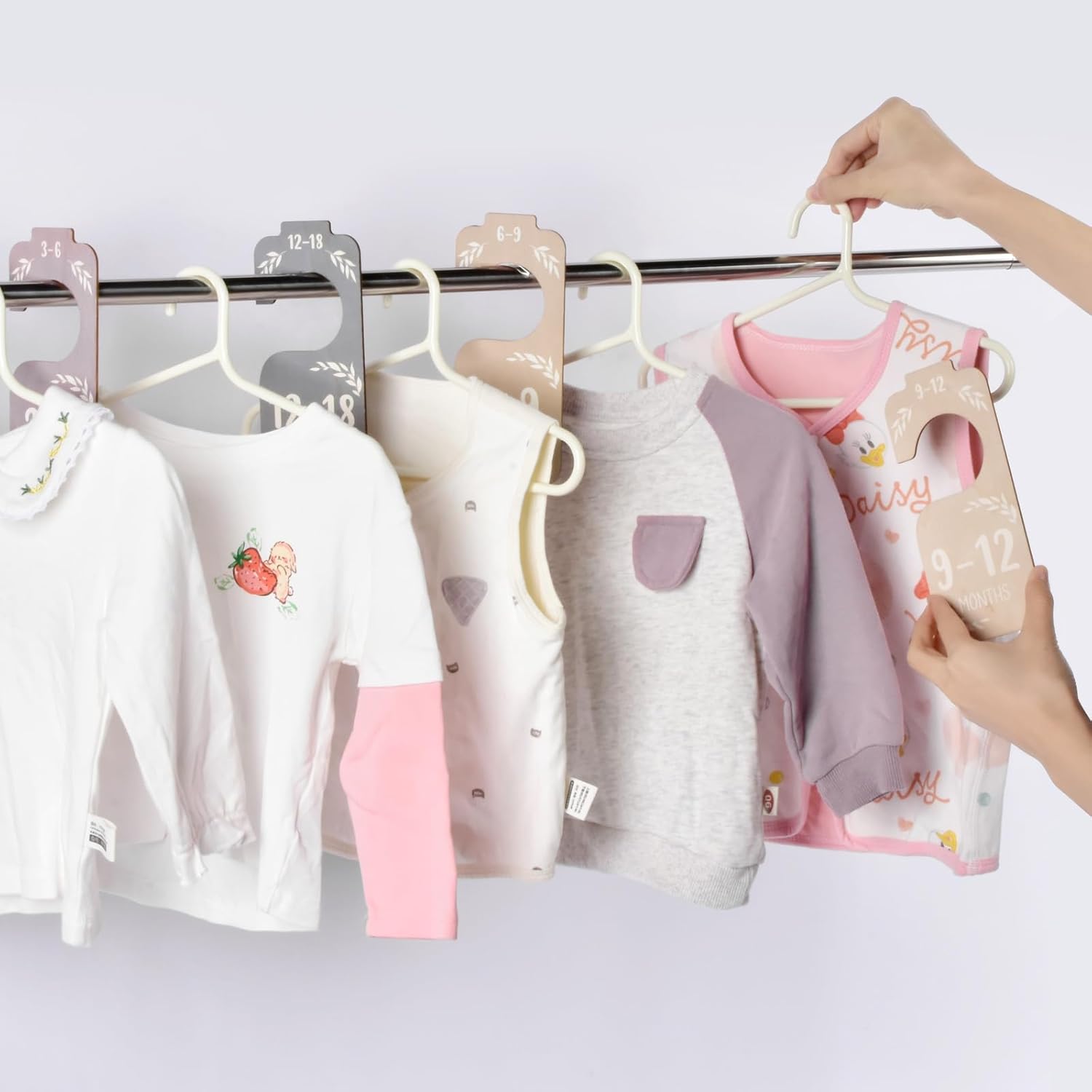- Premium Material- Baby Closet Dividers are made of smooth, shatter-resistant and durable wood. Keep baby clothes organized with our baby closet dividers! No more looking at tags to see the size or spending hours sifting through sizes