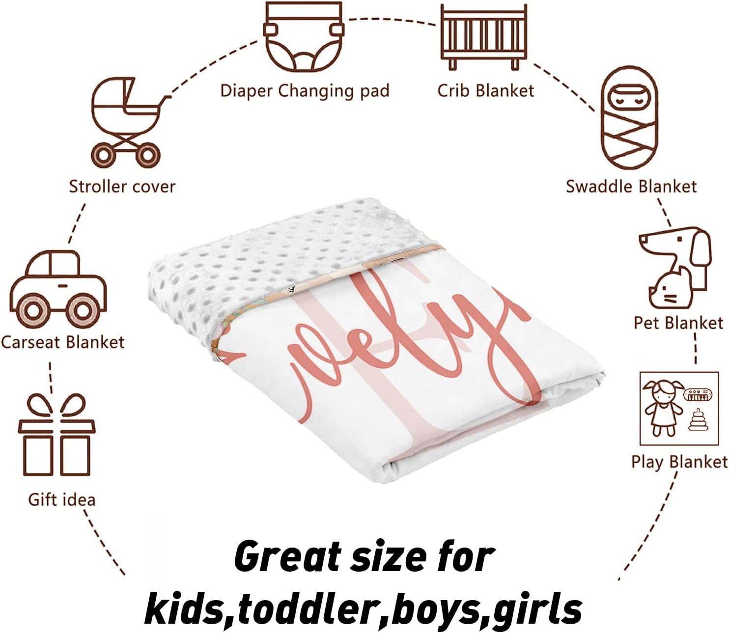 Custom Name Crib Bedding Set - Bohemian Flowers Design, Personalized Baby Nursery Bedding 3-Piece Set– Soft Blanket, Fitted Sheet, Changing Pad Cover – for Newborns Girls Nursery Gifts