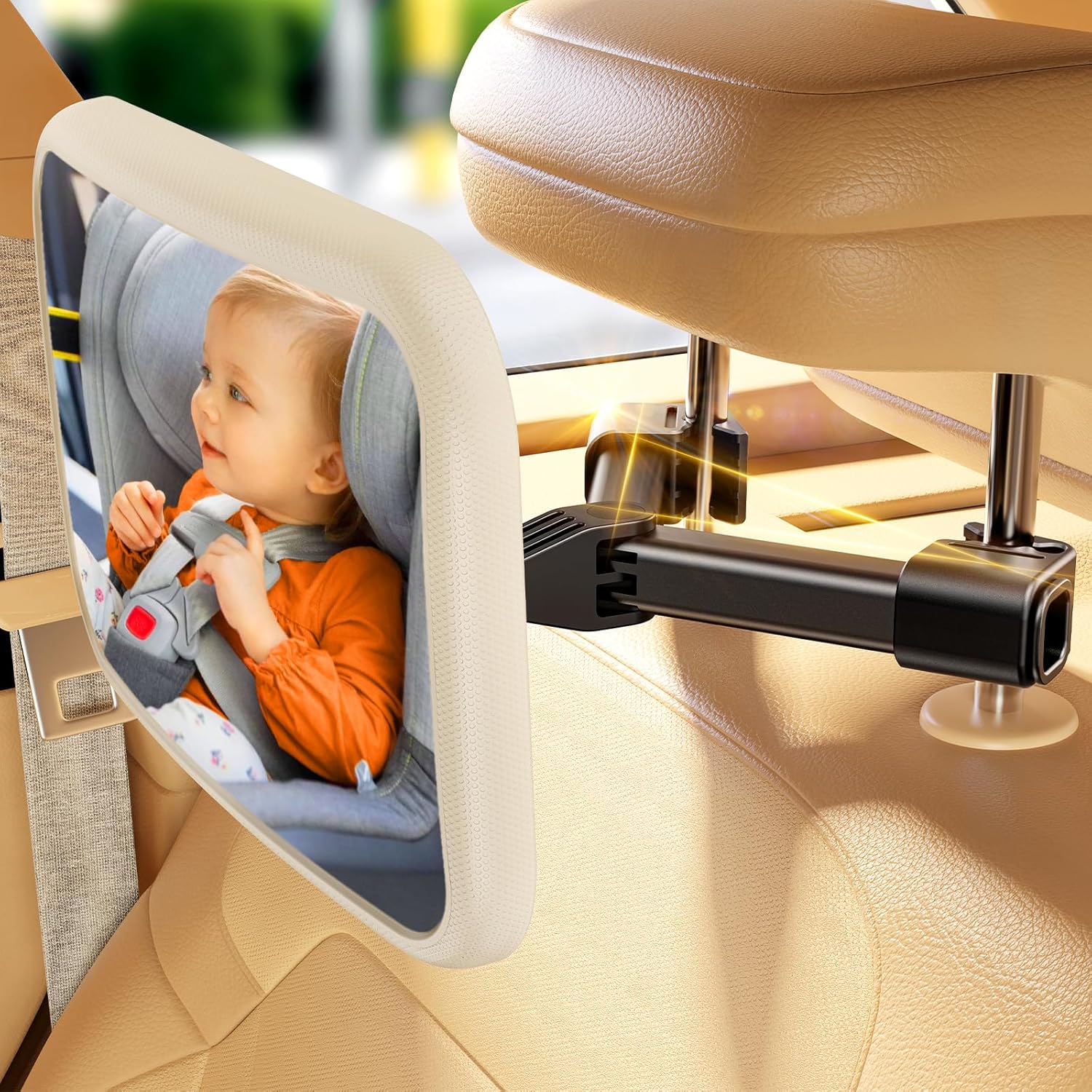 - 3S Install: The hook clip design makes the baby mirror for car very easy to install in 3s. Also, you can easily remove this baby car mirror when you have a customer seat in the back row. Just press the hook to lock the headrest's rod. Which can help you get rid of dealing with messy straps.Note: This car mirror for baby is NOT compatible with the unretractable headrest, like Audi A4, A4L, Q3, Q2, Q2L; Tesla Model 3, Model Y, Model X, Model S; Peugeot 3008; Land Rover discovery/defender; Jeep