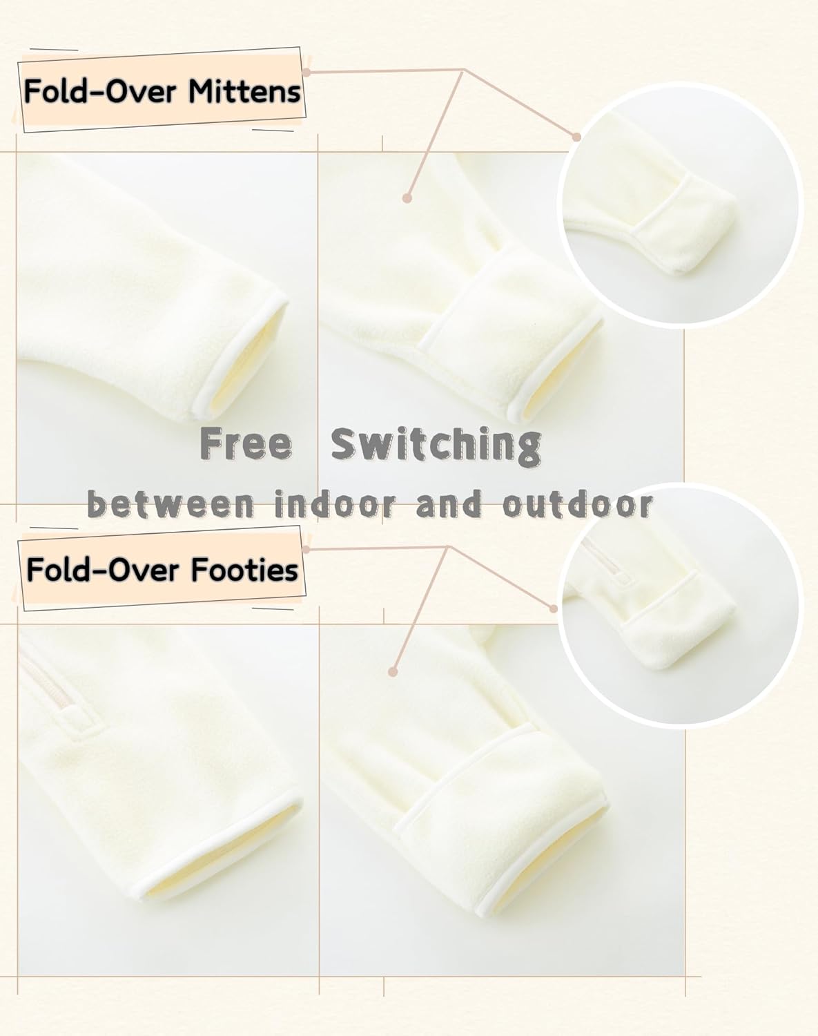 • [Thoughtful design] The double zipper design makes it easy to put on and take off jumpsuits, effortlessly solving the problem of changing diapers! Fold-over mittens and footies, as well as a hooded design, provide extra warmth for babies in cold weather. Indoor and outdoor free switching, can meet your various wearing needs, warm and fashionable.
