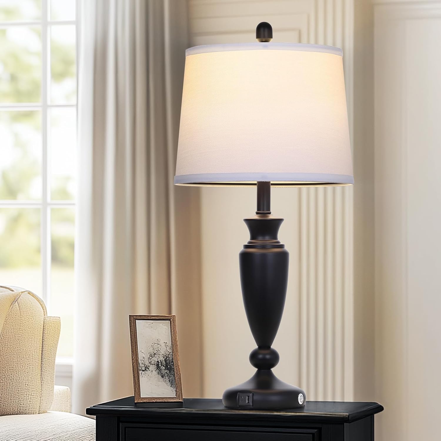 - 【Exquisite Metal Table Lamps】This bedside table lamp design with heavy duty metal lamp body and finished in a natural linen white lampshade which is perfect combination of modern and metal style that adds energy and elegance to your space. Our rustic table lamps not only illuminate your home, but are a unique home decor. (Lampshade needs to be assembled)