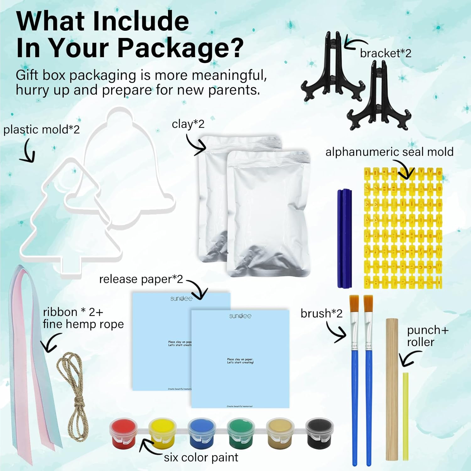 - Neat and Easy to Use:The kit includes a neat, non-stick impression material that is dry and soft and prevents breakage or cracks. It comes with a rolling pin, plastic punch, clay-formed ring and Hemp rope for easy hanging.