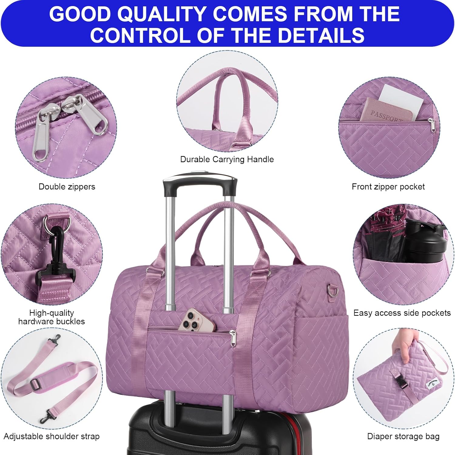 - DESIGNER DIAPER BAG: Designer designed this multi-functional mommy bag, which is not only large in capacity, strong and durable, but also very convenient to carry. The round handle can be used as a portable diaper bag, the detachable shoulder strap can be used on one shoulder or cross-body, and comes with a wide and thick shoulder strap pad, which is shoulder friendly, and the rear luggage cover is easily fixed to the suitcase, reducing the weight of the body