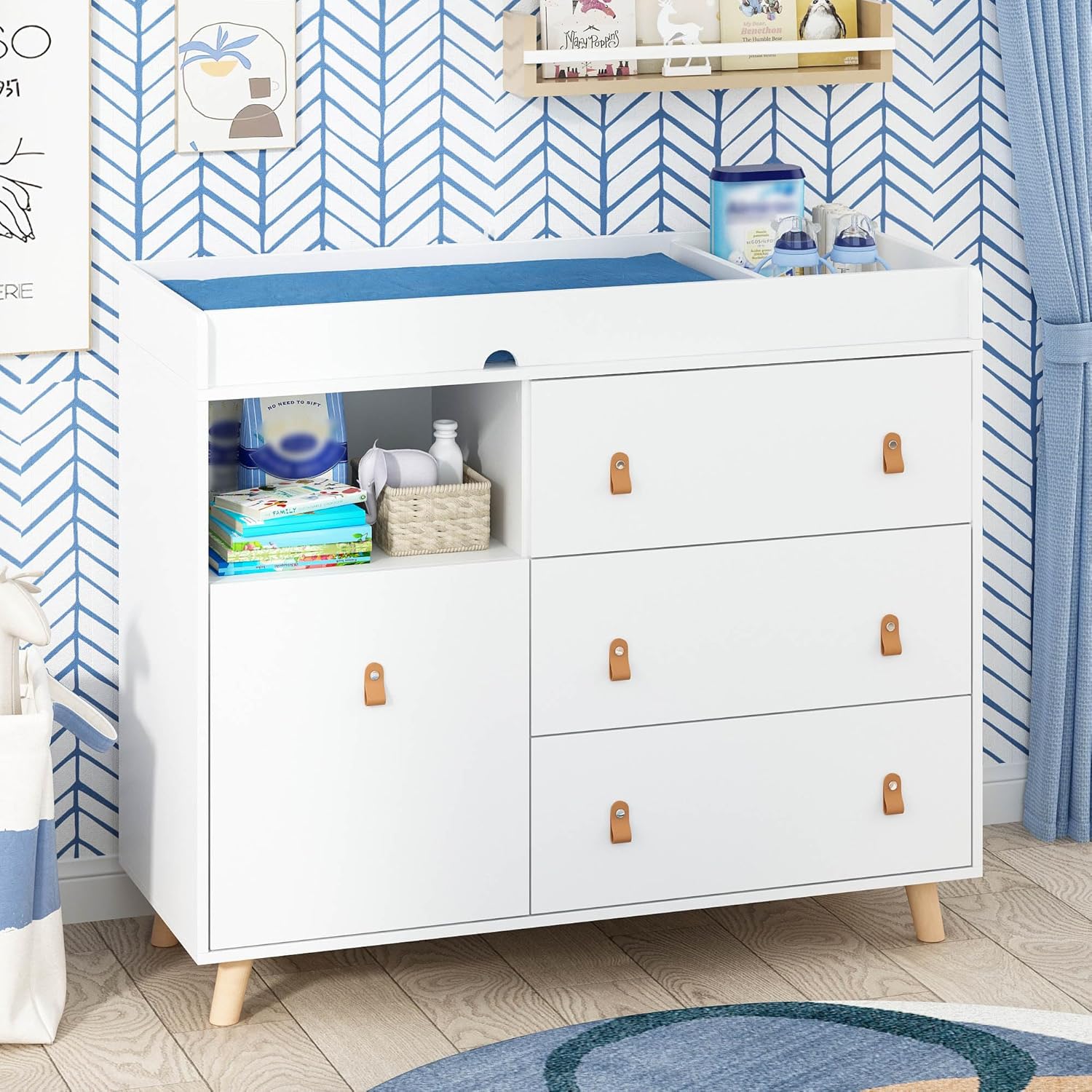 - Simple & Elegance: This white baby changing table dresser effortlessly complements any color scheme and tones in most houses. The smooth and silent drawer slides allow you to quietly and smoothly pull out the drawers even while your baby is sleeping. The raised feet make cleaning a breeze and also allow for easy access for vacuuming or robot cleaners.