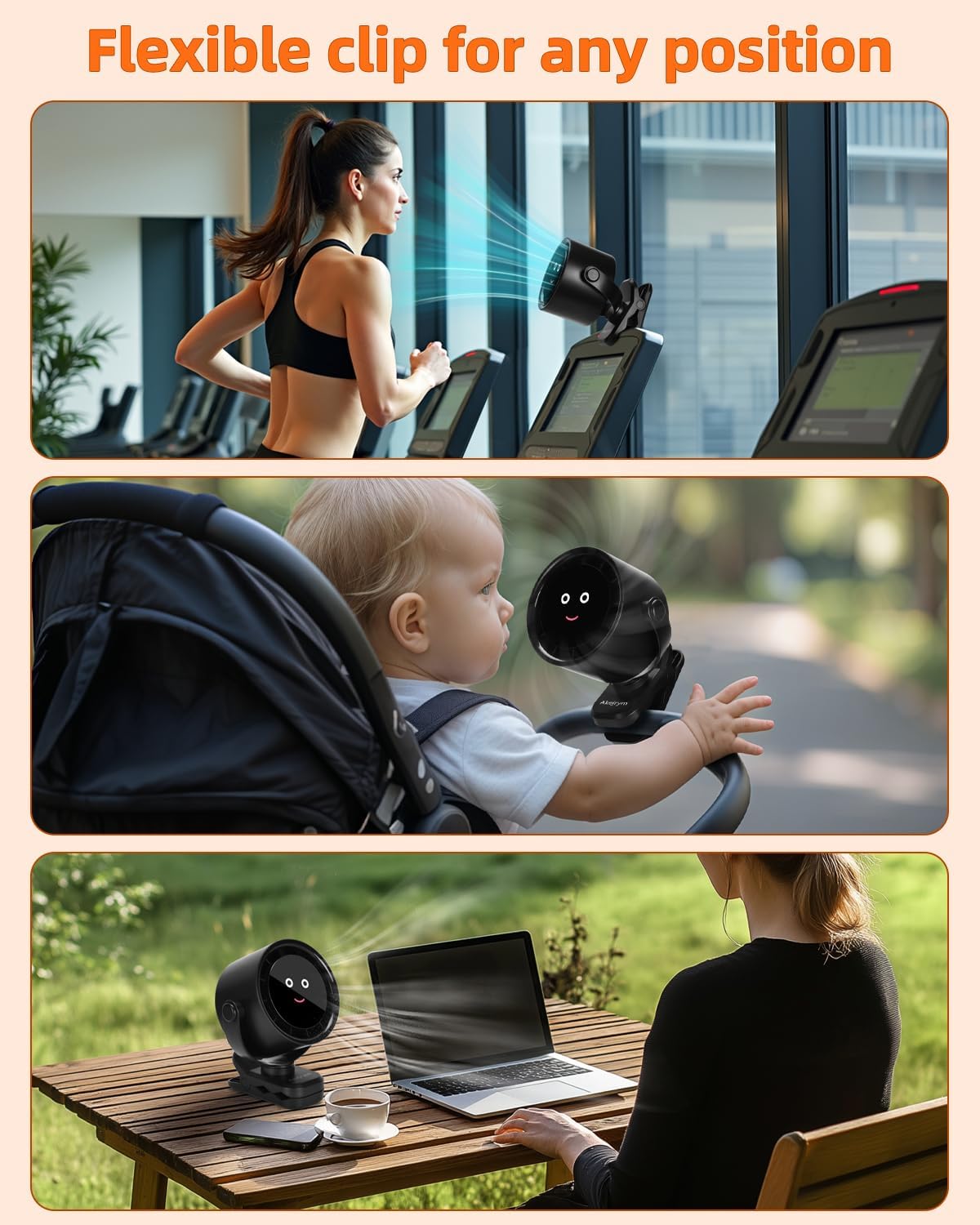 - 【Strong Grip Clamp】Easily clip on any surface, even if running upside down, can still be adjusted to point in all directions. This personal fan comes with easy-to-open clips that clip onto a 2.5-inch thick objective lens. Moreover, the soft rubber on clamp will never cause any scratch.