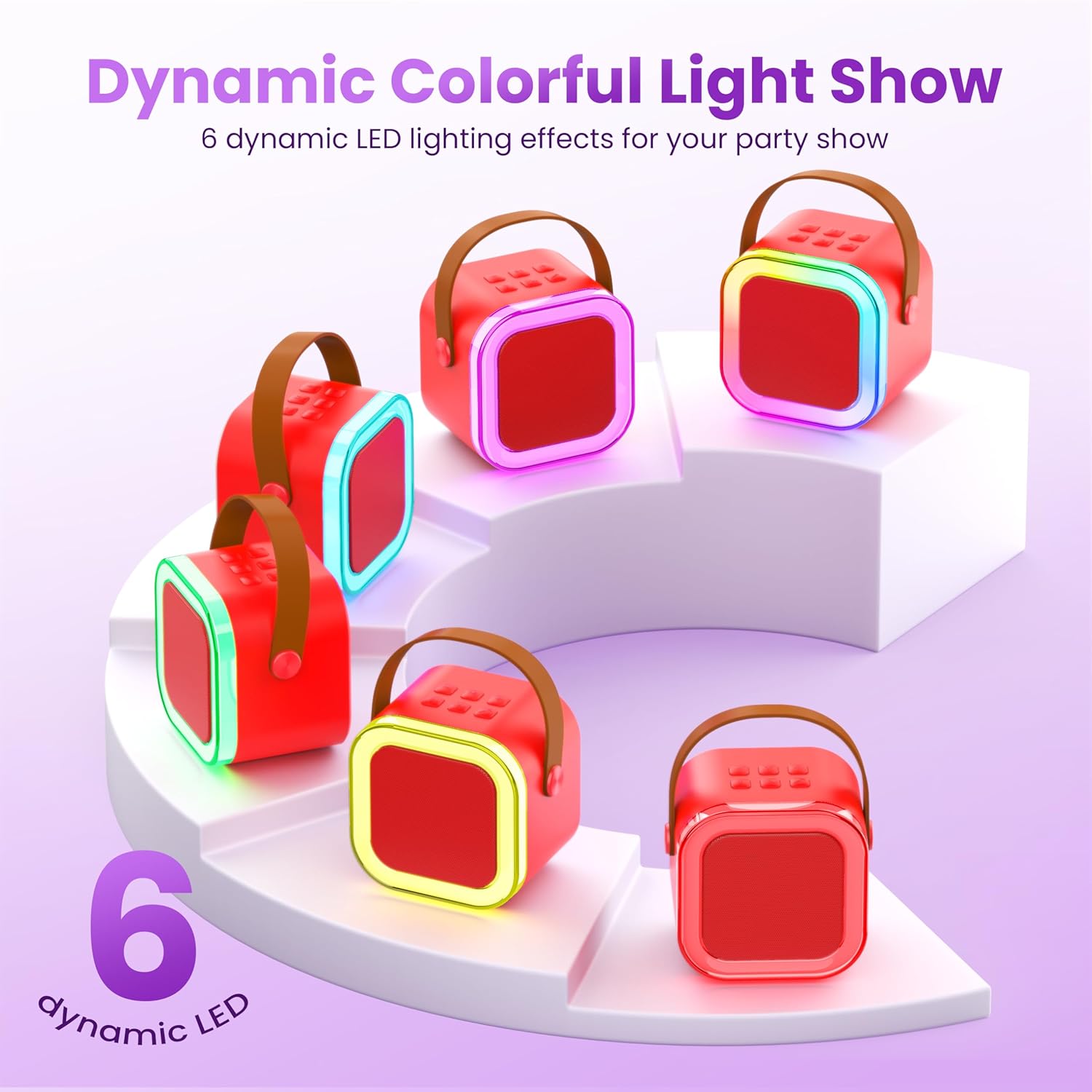 Karaoke Machine for Kids Adults, Portable Bluetooth Mini Karaoke Microphone Singing Speaker with 2 Mic and Light, for All Smartphones,Birthday, Family,Home Party(Red)