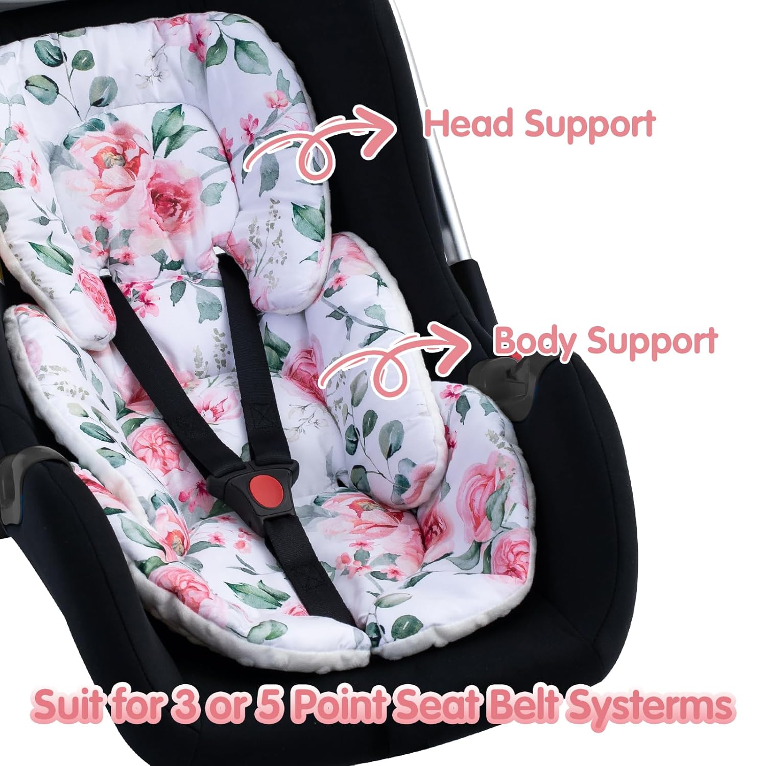 Infant Car Seat Insert for Girls Boys, Ultra Soft Carseat Head Support for Infant, Breathable Baby Car Seat Cushion with Double Side Design, Baby Car Seat Head Support for Stroller, Swing, Bouncer