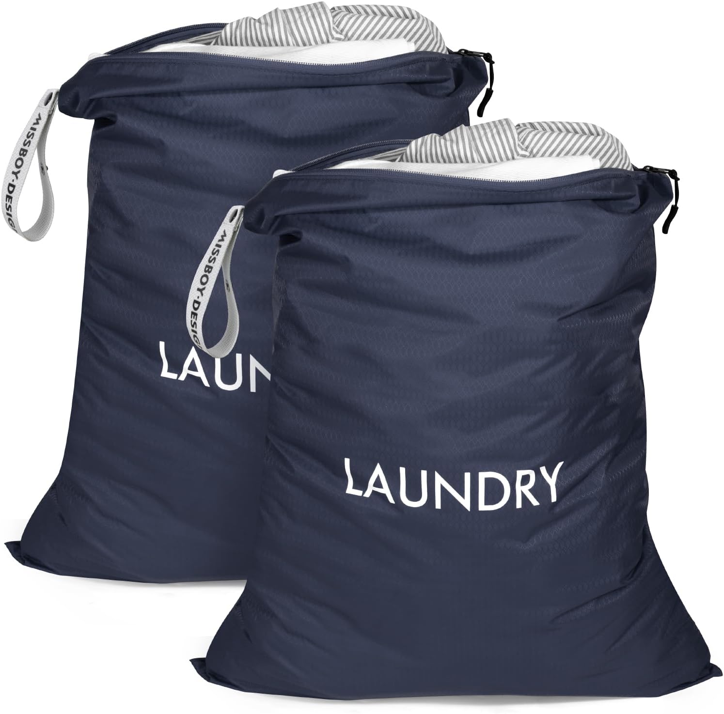MissBoy 2 Pack Laundry Bags, Nylon Washable Wet Dry Bag, Travel Laundry Bags for Dirty Clothes, Dirty Clothes Organizer Bag for Home, College Dorm Laundromat