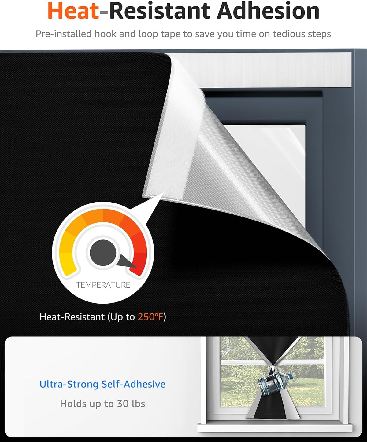 - ✨【Upgrade Heat-Resistance Magic Tapes】Sumobaby 42"x48" blackout curtain for bedroom features premium pre-attached tapes for easy,drill-free installation.Two extra tape strips included,each splitable into 5 squares.Made of acrylic, these tapes leave no residue,providing strong adhesion and heat resistance(200°F to 250°F).Bid farewell to concerns about your black out curtains slipping in hot weather.