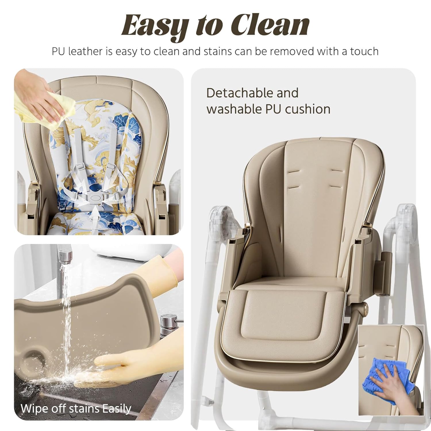Multi Functional All in 1 Baby High Chair Swings for Infants Foldable Rocking 8 Level Height Adjustment Eco Friendly Washable PU Cushion Ultimate Baby Feeding Chair (Brown)