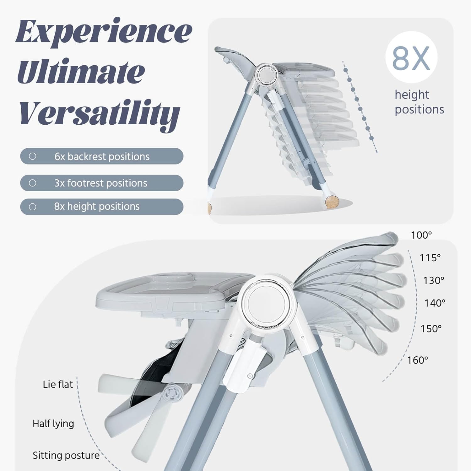 Multi Functional All in 1 Baby High Chair Swings for Infants Foldable Rocking 8 Level Height Adjustment Eco Friendly Washable PU Cushion Ultimate Baby Feeding Chair (Gray)
