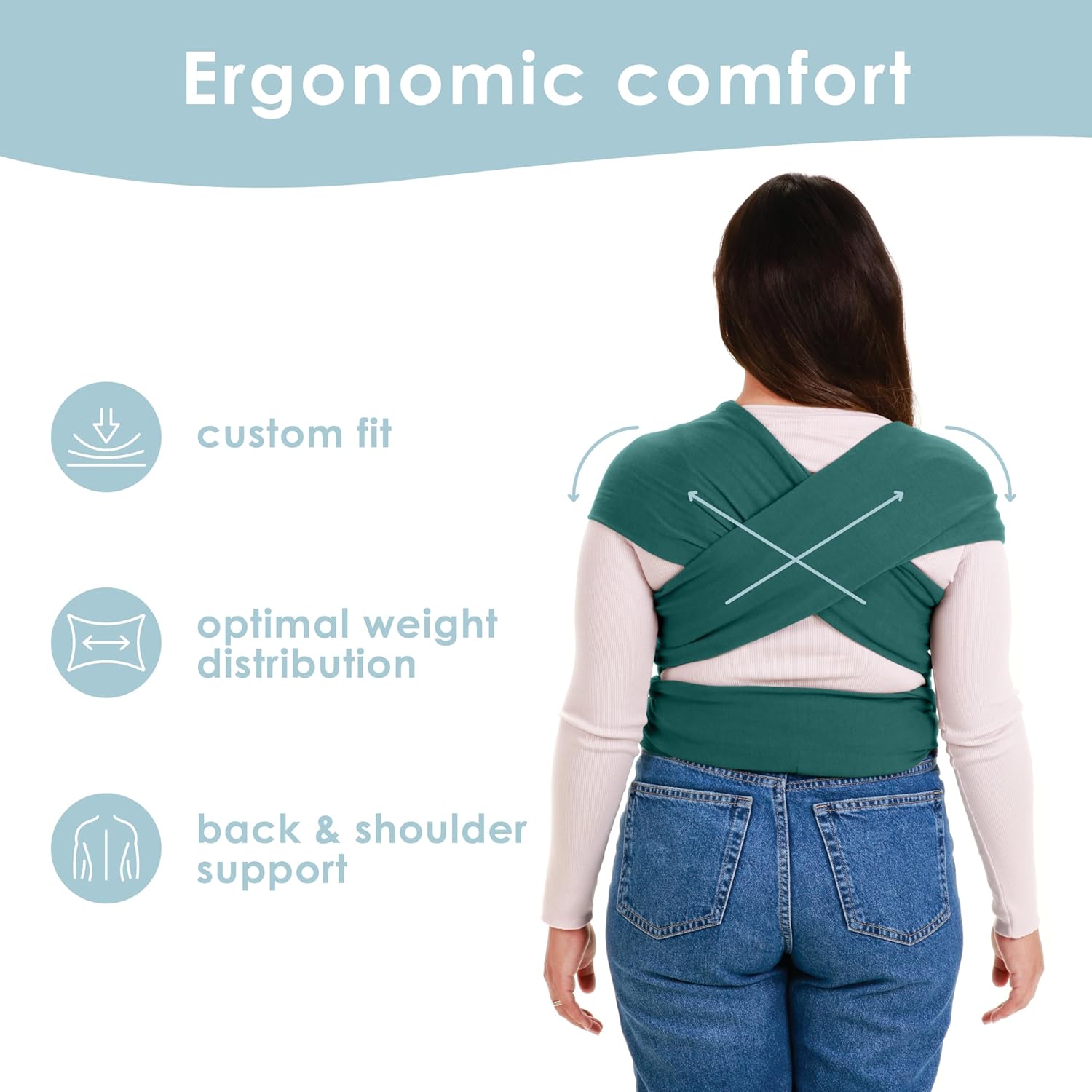 - Ergonomic fit: Count on optimal weight distribution to support your back and shoulders with our baby sling wrap! Each time you tie this baby sling carrier, you are creating a custom, ergonomic fit for yourself and your baby