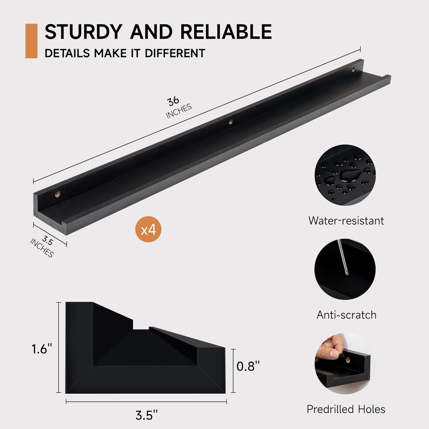 Picture Ledge Shelf for Wall, Floating Shelves Set of 4, 36 Inch Long Nursery Book Shelves for Toys Storage, Kids Bookshelf Wall Mounted for Books Photo Frames, Black