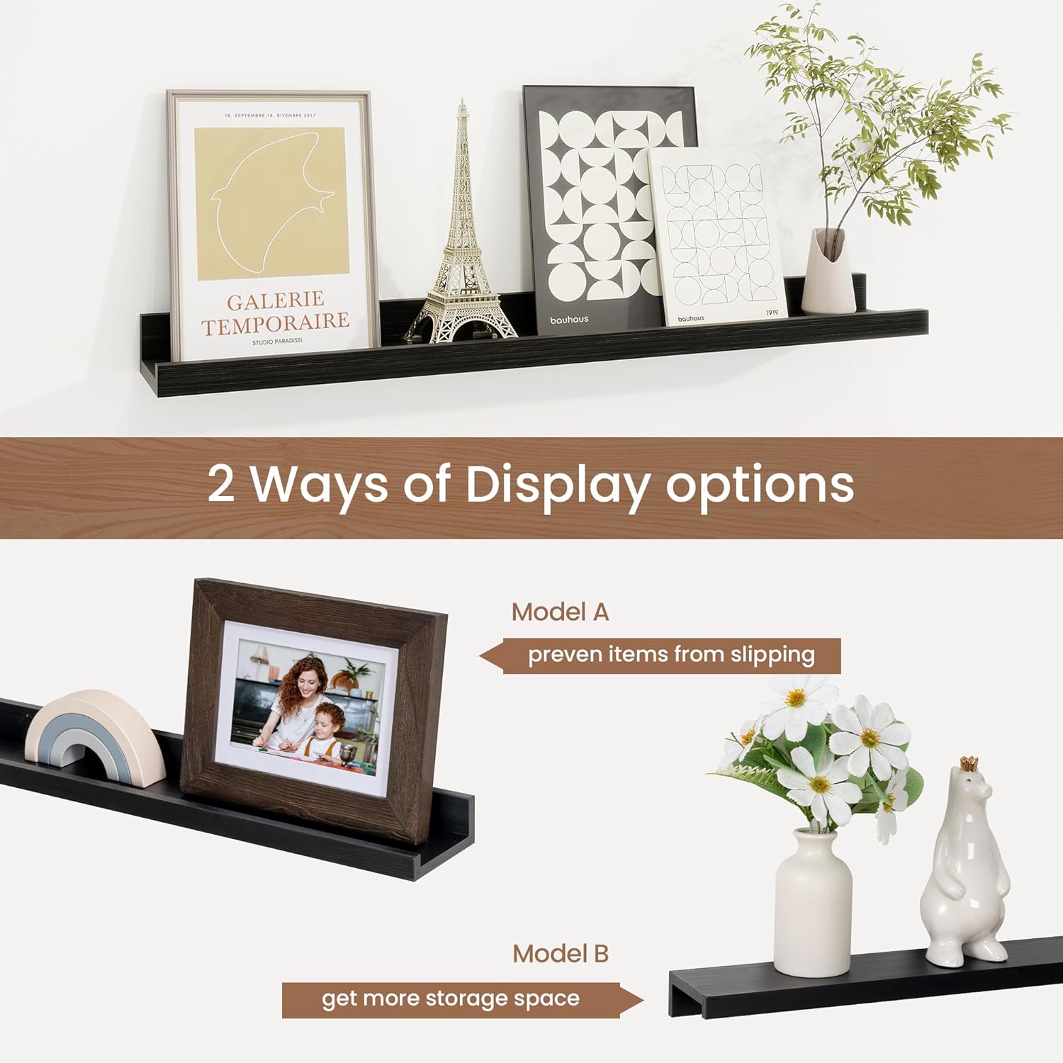 - Chic Minimalist Design: Solid pine wood picture ledge shelves available in multiple colors and sizes, these picture shelves complement any decor, from modern to farmhouse. Use them alone or in a gallery-style arrangement to create a stylish focal point