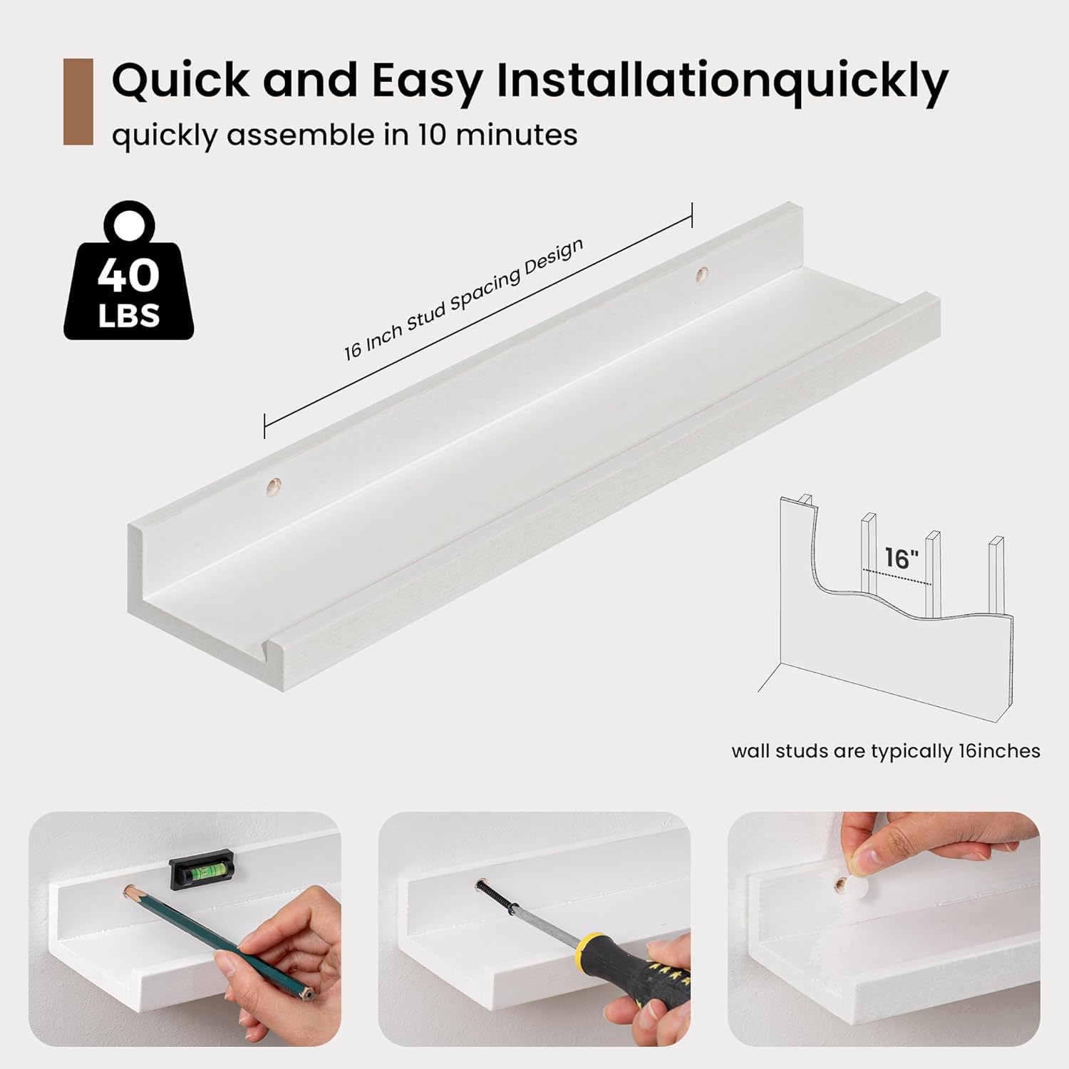 - Easy to Install: Fun Memories fully assembled solid pine wood picture ledge shelf set of 2 comes with the pre-drilled holes and necessary hardware including a mini level to make installation a breeze. The floating design creates a seamless, streamlined look, adding a touch of modern sophistication to your interior. If you have any questions about our products, please feel free to contact us