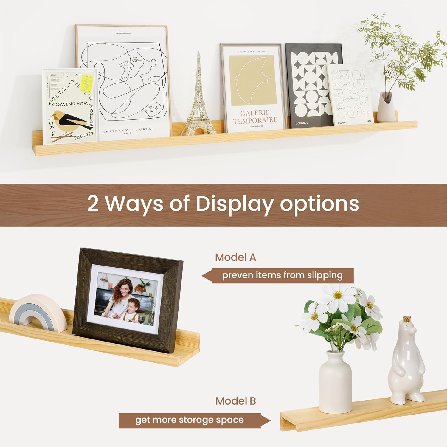 - Chic Minimalist Design: Solid pine wood picture ledge shelves available in multiple colors and sizes, these picture shelves complement any decor, from modern to farmhouse. Use them alone or in a gallery-style arrangement to create a stylish focal point