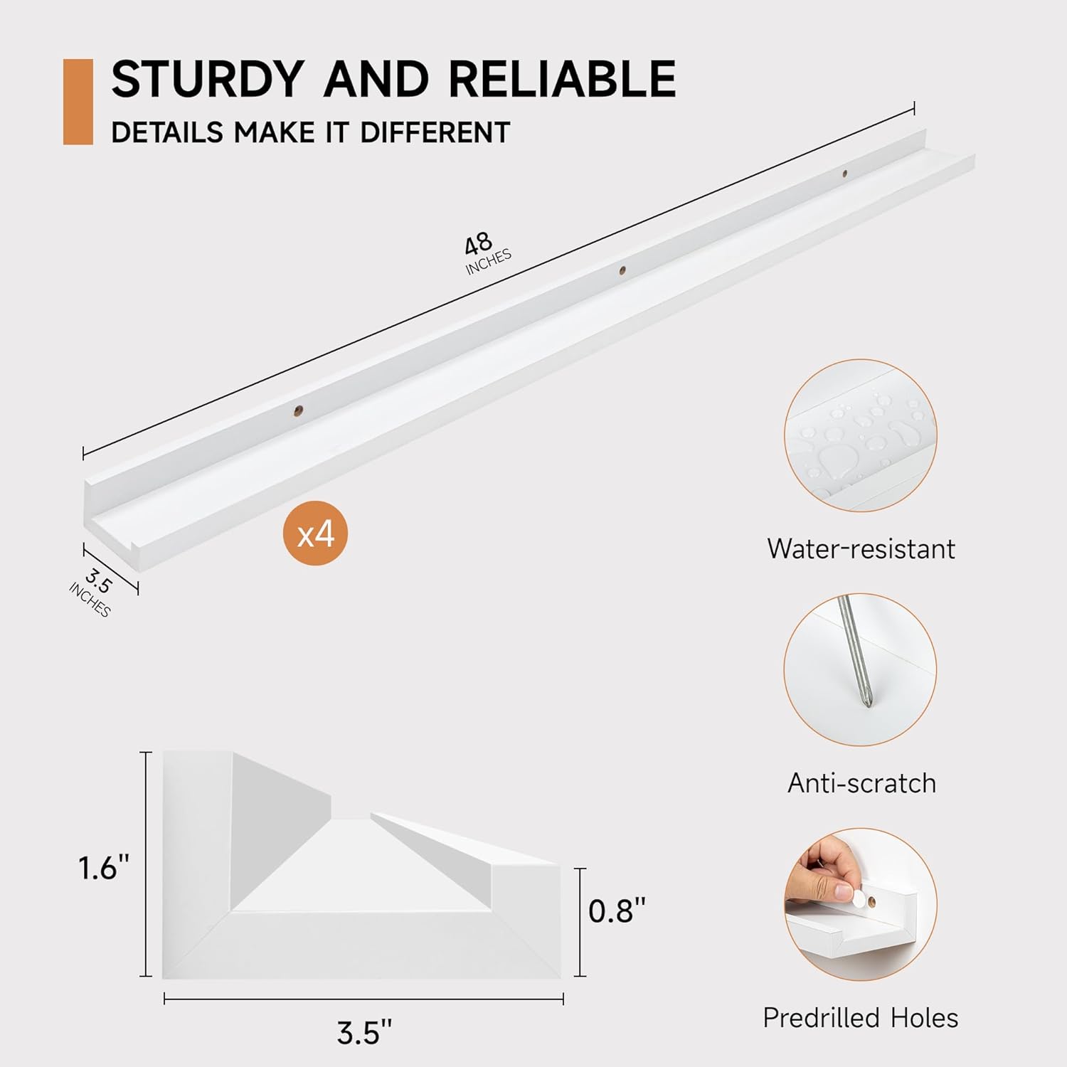 Picture Ledge Shelf for Wall, Floating Shelves Set of 4, 48 Inch Long Nursery Book Shelves for Toys Storage, Kids Bookshelf Wall Mounted for Books Photo Frames, White