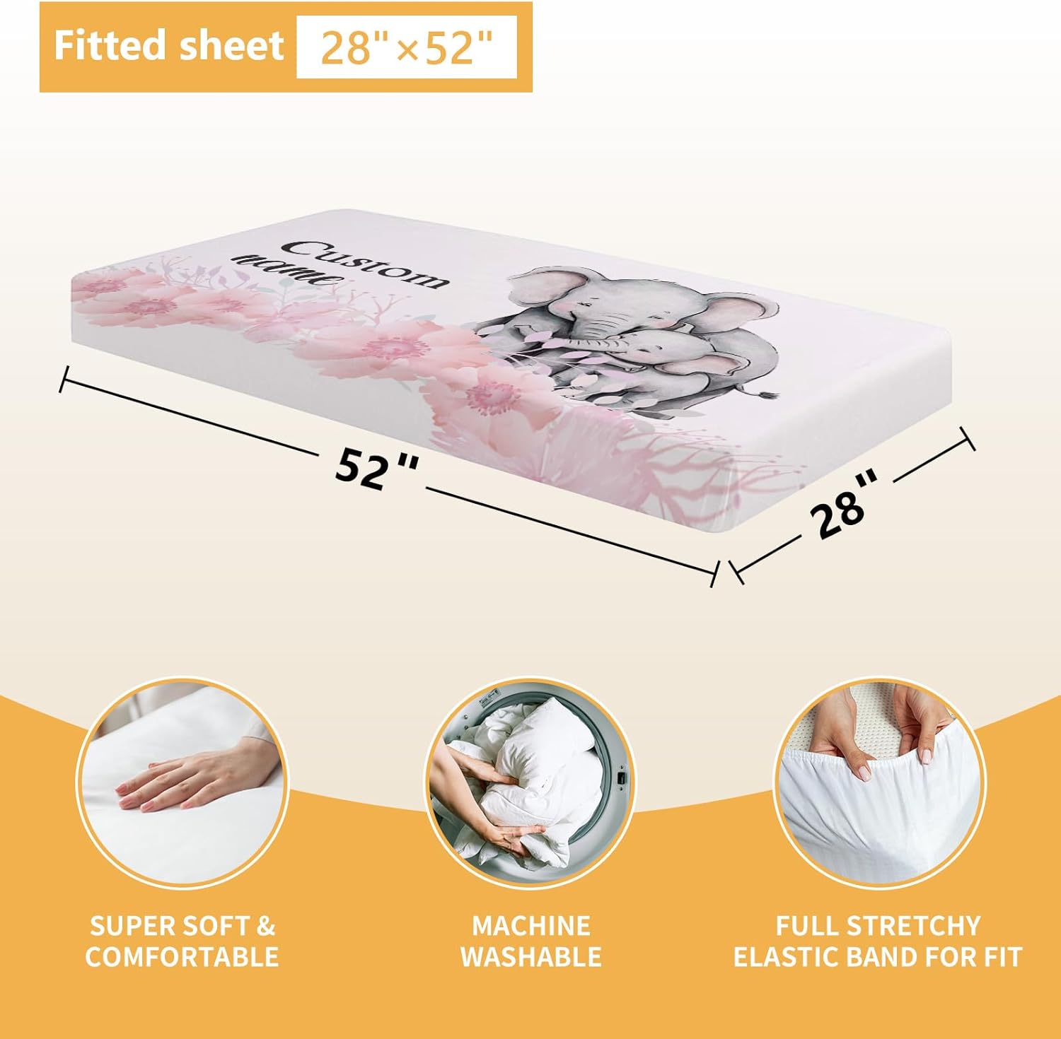 Personalized Baby Bedding Set, 5 Pcs Custom Baby Crib Sets with Name, Toddler Bedding Set for Baby Girls, Pink Elephants Double Layer Nursery Bedding Set, Customized Gifts for Infants Kids