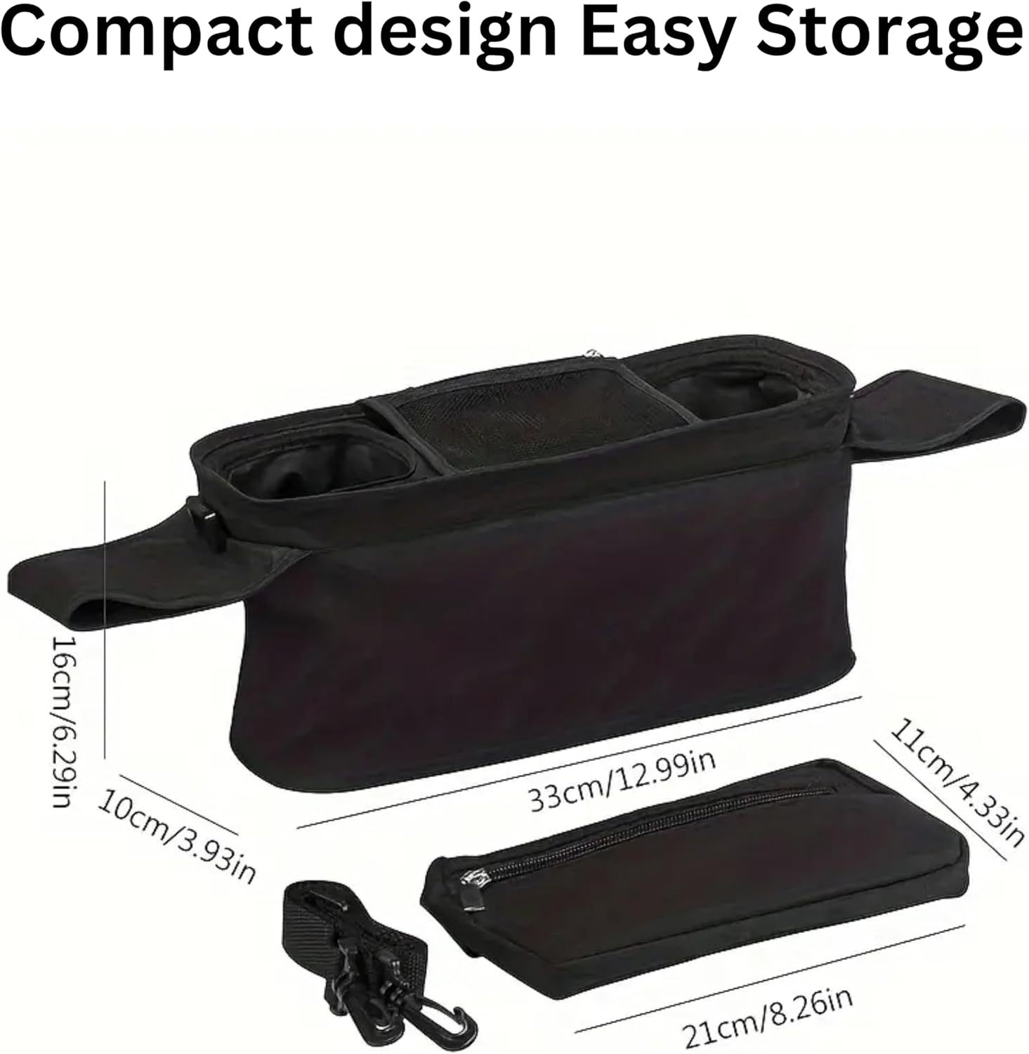 - Convenient Storage: This organizer features multiple pockets and compartments designed to keep your essentials neat and easily accessible. It includes an insulated cup holder to keep beverages at the right temperature and a detachable phone bag for added convenience. With ample space for storing keys, wipes, snacks, and more, it ensures everything is organized and within reach. Ideal for busy parents or on-the-go individuals, it offers practicality and efficient storage for your daily needs.