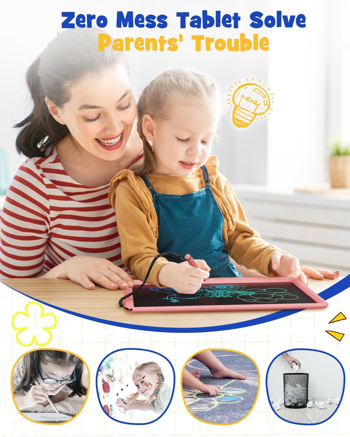 - Great Gift Choice for all age groups: Do you have a hard moment for picking a unique gift for your families or friends? Have a look at this multi-use 15inch LCD writing tablet! A suitable gift for men, women, children, teen boys and girls who have everything. It would be a surprise gift to be received on Christmas, Thanksgiving, Birthday, Teacher's Day, Mother and Father's Day, Children's day, etc.