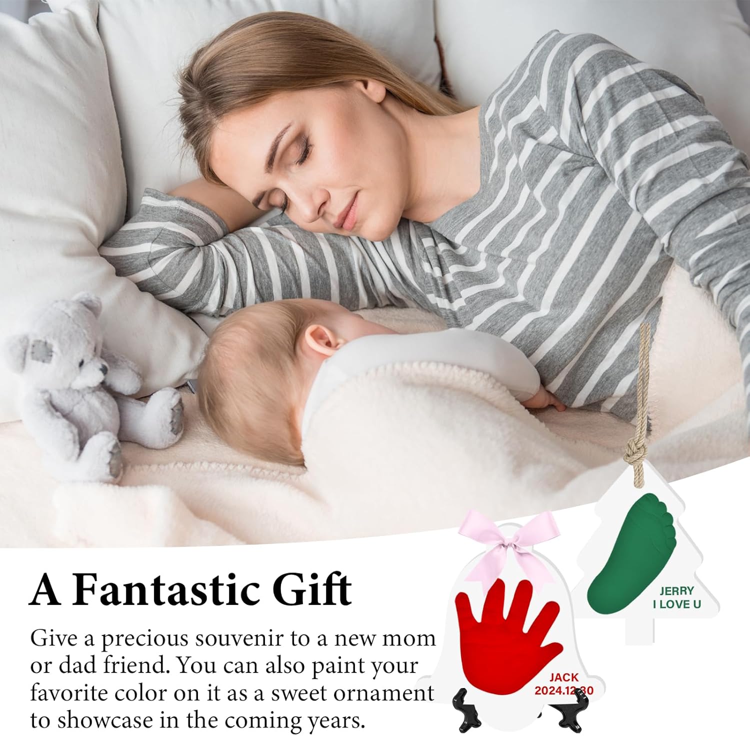 Baby Hand & Footprint Keepsake Kit - Personalized Handprint Footprint Ornament for Newborn Babies, New Mom Gifts, Baby Shower & Registry, Nursery Picture Frame, Pet Paw Print Ornament