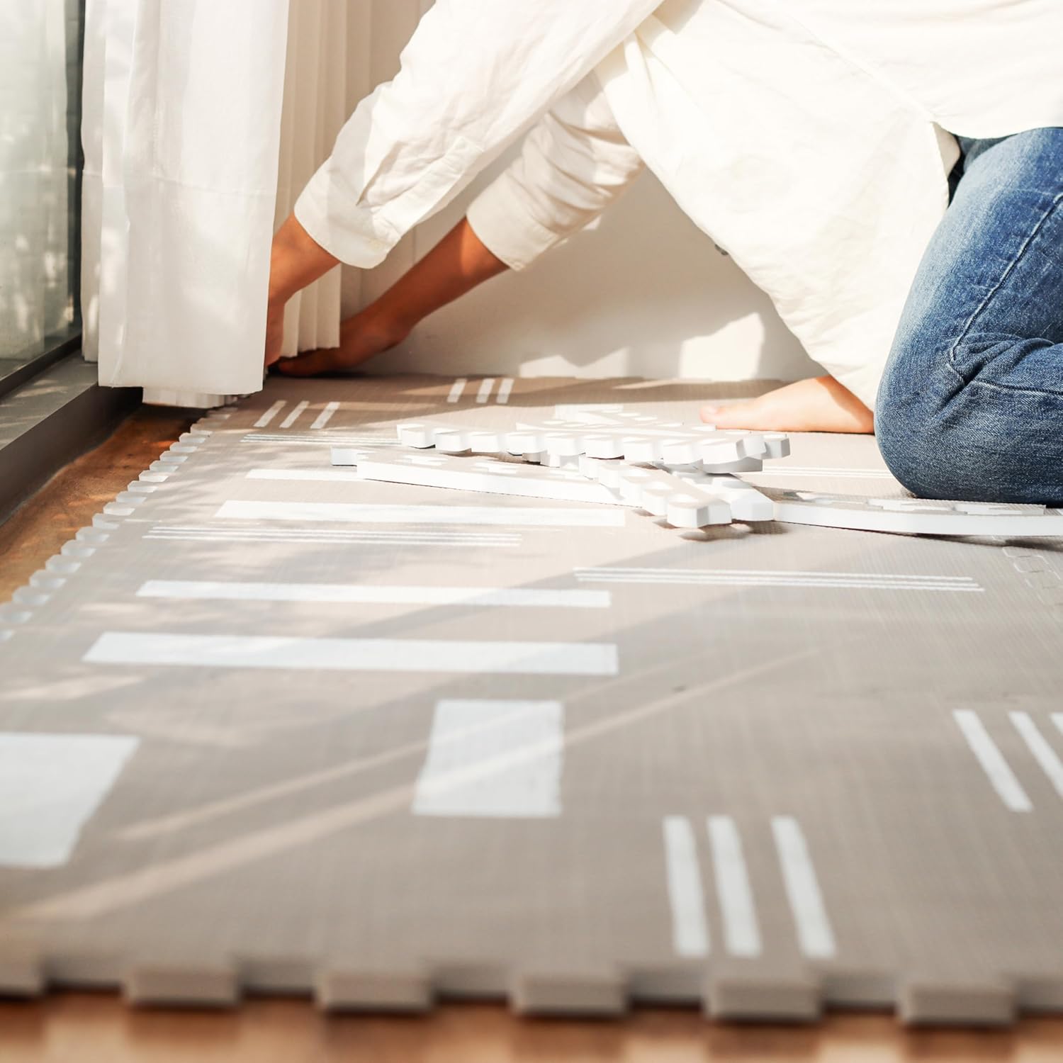 - โ MAKES ANY ROOM A SAFE SPACE - Our play mat is not just a regular mat, it's an entire play area for your child. It's perfect for playrooms, living rooms, and even outdoor use. They protect from bumps and bruises and are great for hardwood floors, marble floors, or low pile carpet. The mats can be easily stored or quickly put together so there's always plenty of room for your little one to roll, crawl, and explore.