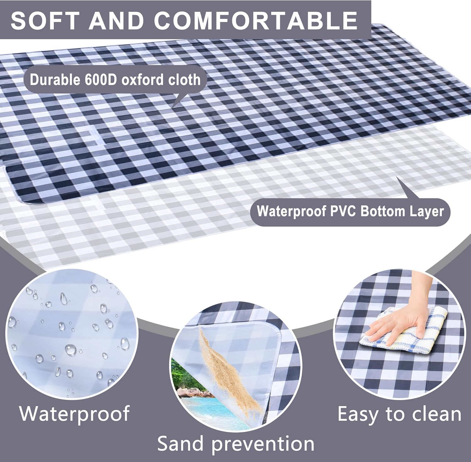 80"x60" Waterproof Sandproof Picnic Mat - Portable Foldable Outdoor Blanket for Beach, Park, Travel & Indoor Use - Lightweight Compact Design, Easy-Carry (Gray&White)