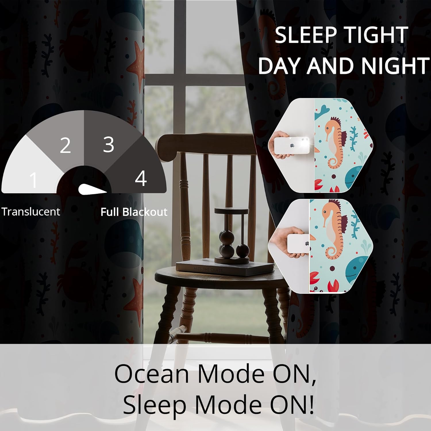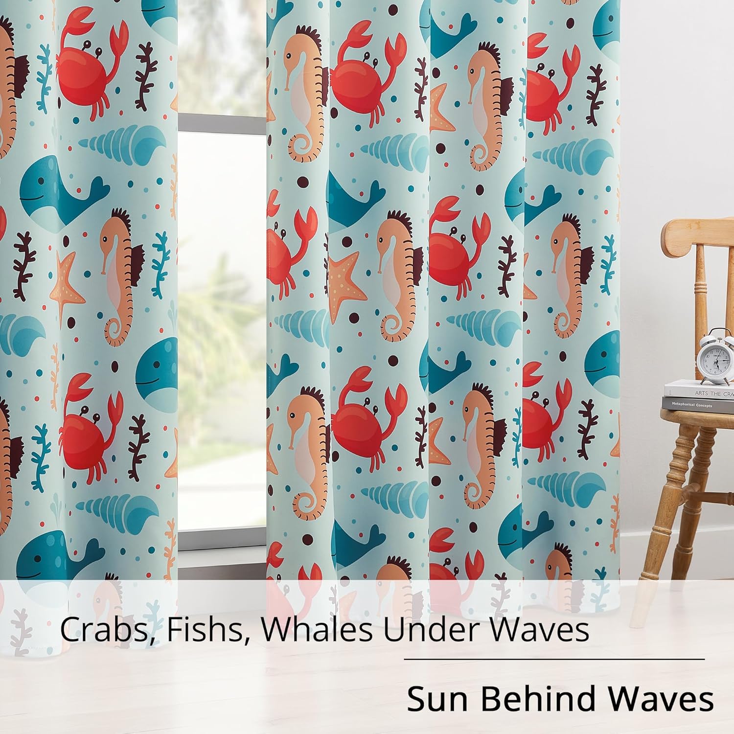 - Enchanting Ocean Theme: Features a vibrant ocean design with sea creatures and waves, bringing a touch of underwater adventure to kids' bedrooms, nurseries, or playrooms.