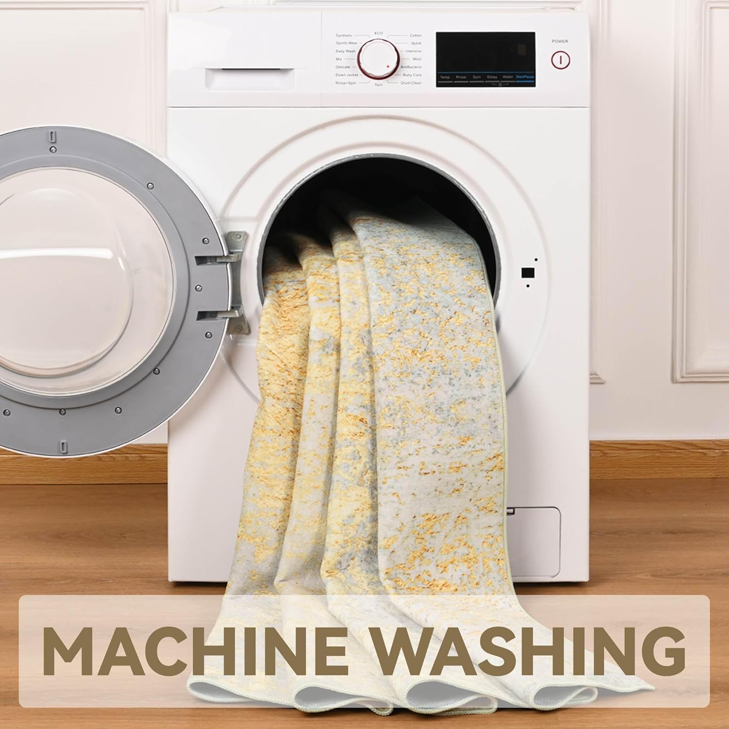 - Non-slip Backing: The bottom of the washable rug has a soft TPE rubber backing. It adheres very well to the floor and is not easy to slip, reducing the risk of tripping. Professional machine weaving and reinforced locking edges ensure no shedding