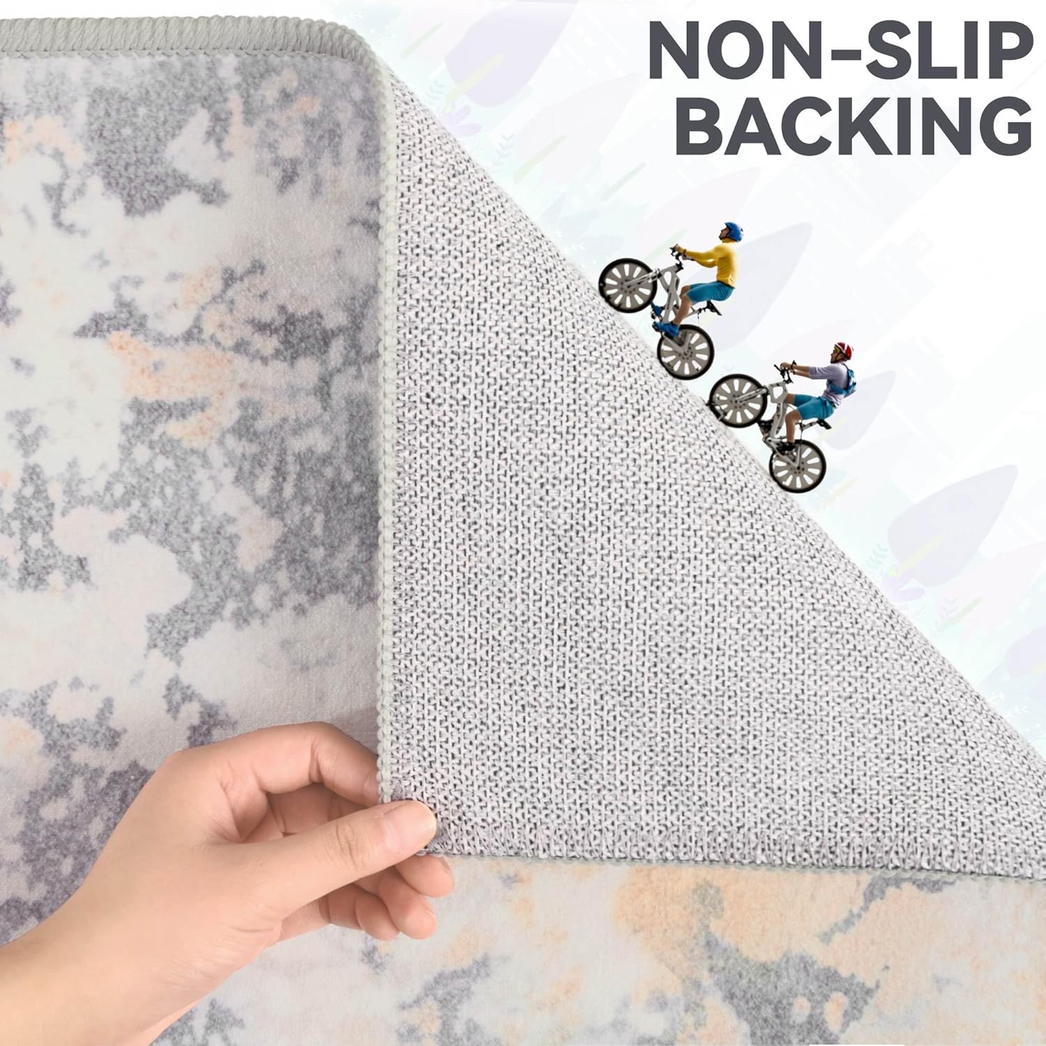 Nursery Rug for Baby Girl, 5x7 Grey Washable Rugs for Living Room Bedroom Dorm Non Slip, Stain Resistant Neutral Carpet Low Pile for Classroom, Dining Room, Kids Playroom