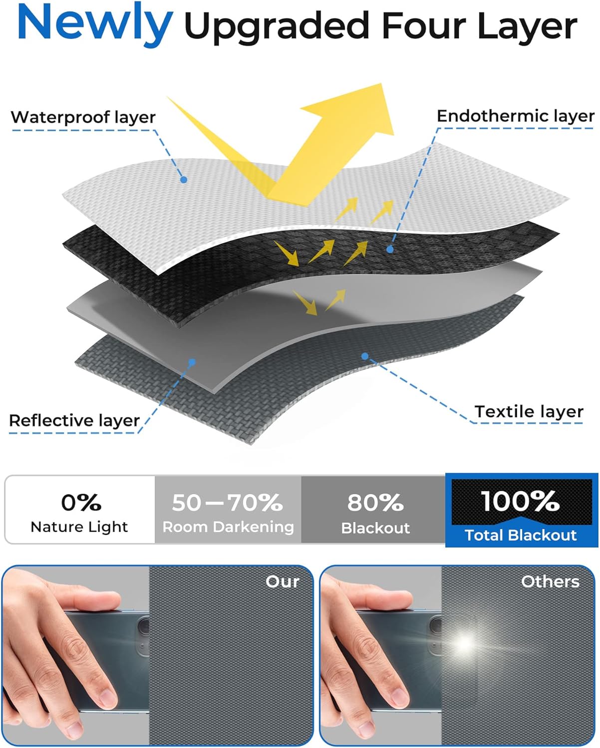 - 【100% Blackout】Sumobaby blackout curtain adopts upgraded reflective silver coating and high-density black polyester, the blackout effect can easily reach 100%. Blocks sunlight and harmful UV rays to darken your room, reduce heat and enhance privacy.