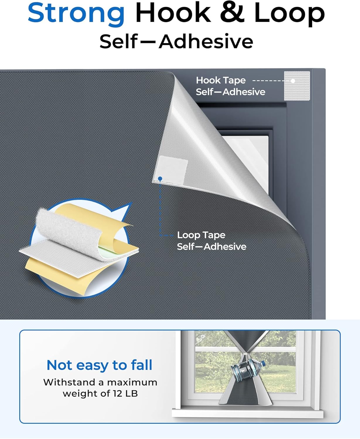 - 【Strong Hook and Loop Tape】Each blind for windows come with 20 pairs of self-adhesive hook and loop tape, easy to apply, has strong stickiness, and firm grip, suitable for all kinds of flat surfaces. Such as glass, wall, aluminum alloy windows, etc. You don't need to worry about the blackout window cover falling.