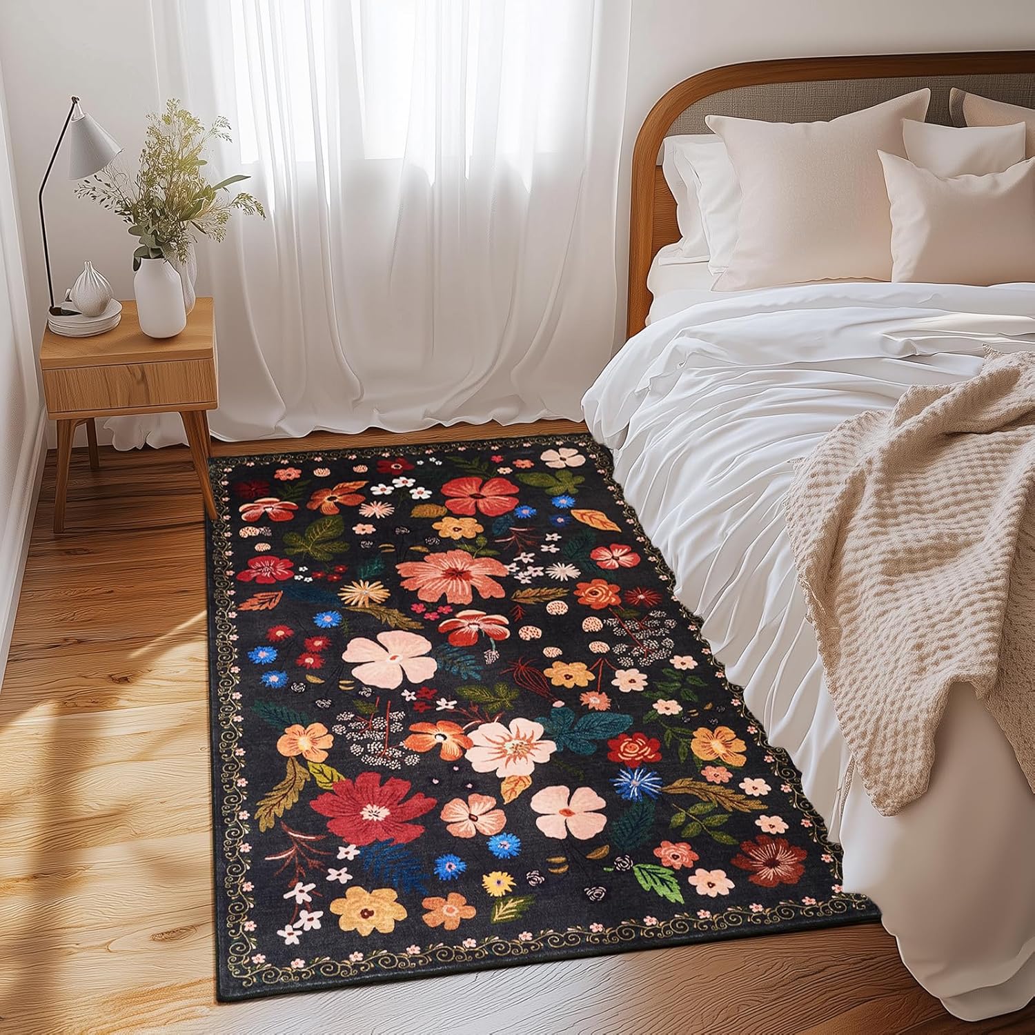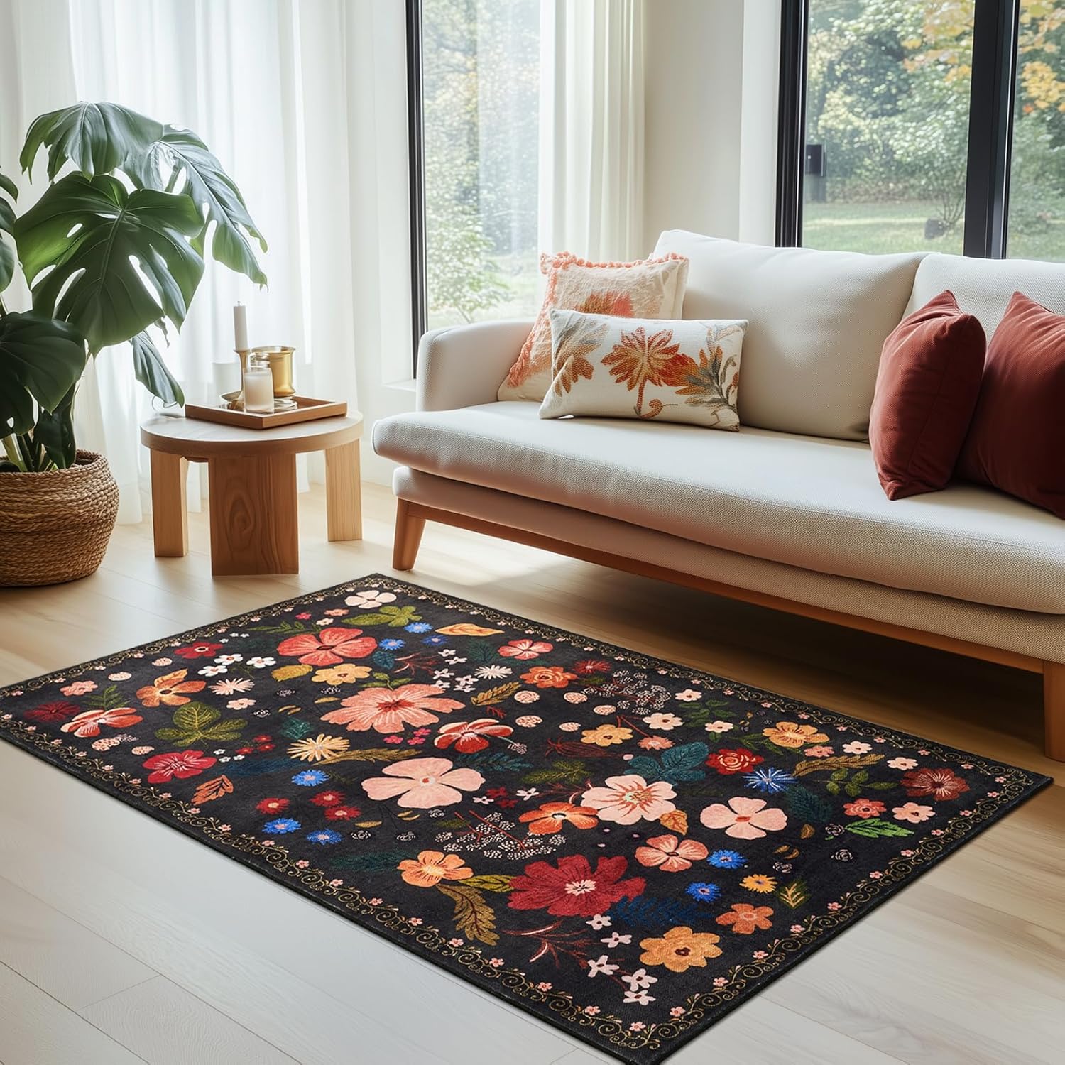 - Timeless Design for Any Space: Featuring Boho floral patterns and warm, rich colors, this area rug brings both elegance and coziness to your home. Its 0.3” pile height makes it perfect for high-traffic areas and underneath furniture, whether you’re creating a cozy living room or a stylish dining area.