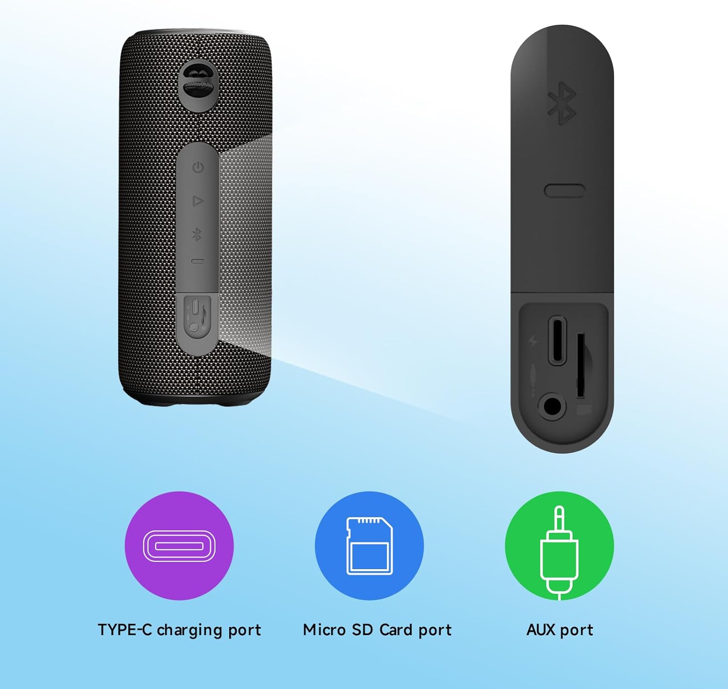 - IPX7 Waterproof & Floating Design – Take Music Anywhere: This floating Bluetooth speaker is IPX7 waterproof, surviving rain, splashes, and even pool submersion—perfect for kayaking, beach days, or shower jams. Its anti-slip base and bike mount compatibility also make it a top Bluetooth speaker for motorcycle or bicycle handlebars, with dustproof durability for off-road adventures