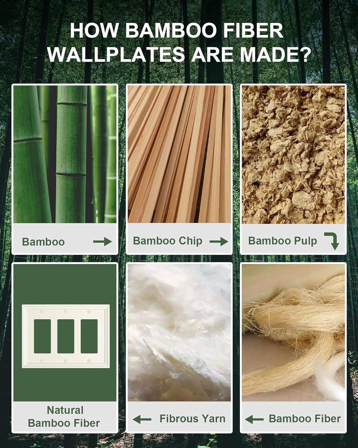2-Pack Triple Decorator Outlet Cover Plate, Light Almond Modern Decorative Switch Plates and Outlet Covers, Natural Bamboo Fiber Wall Plates for Electrical Outlets
