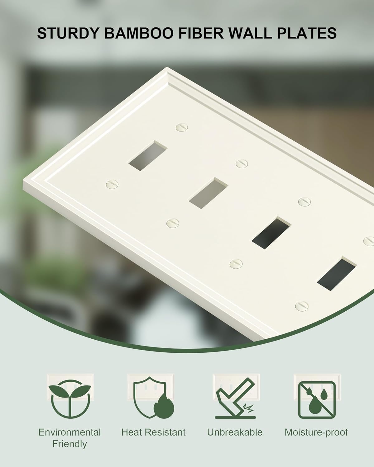 2-Pack Quad Toggle Light Switch Cover Plate, Light Almond Decorative Switch Plate Covers, Natural Bamboo Fiber 4 Gang Wall Plate, Corrosion Resistant