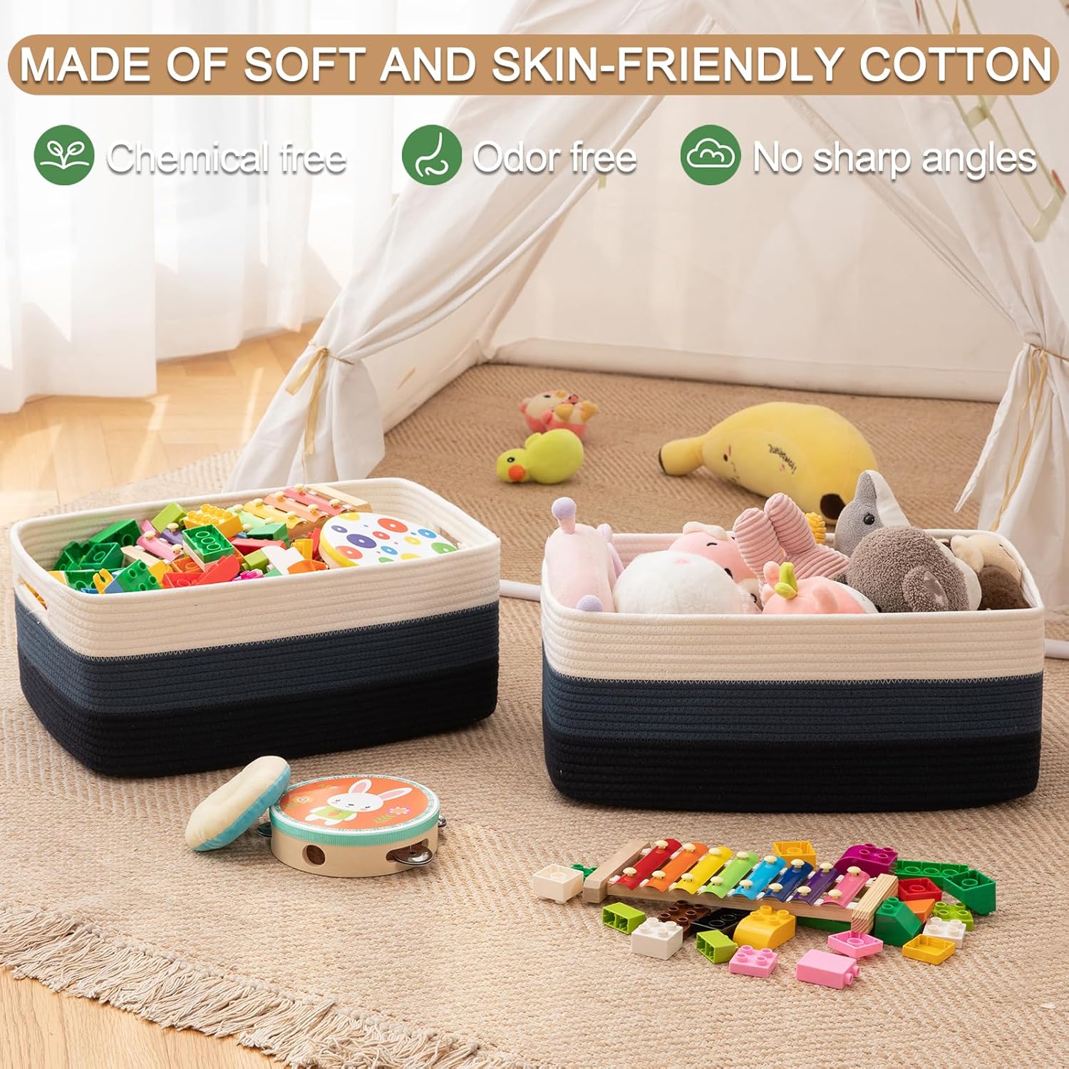 • Versatile and Convenient: Perfect as clothing baskets, baby baskets, toy bins, dog toy baskets, playroom organizers, entryway shoe baskets, and blanket baskets, or as decorative baskets and large gift baskets. A great way to reduce clutter for better organization and less stress