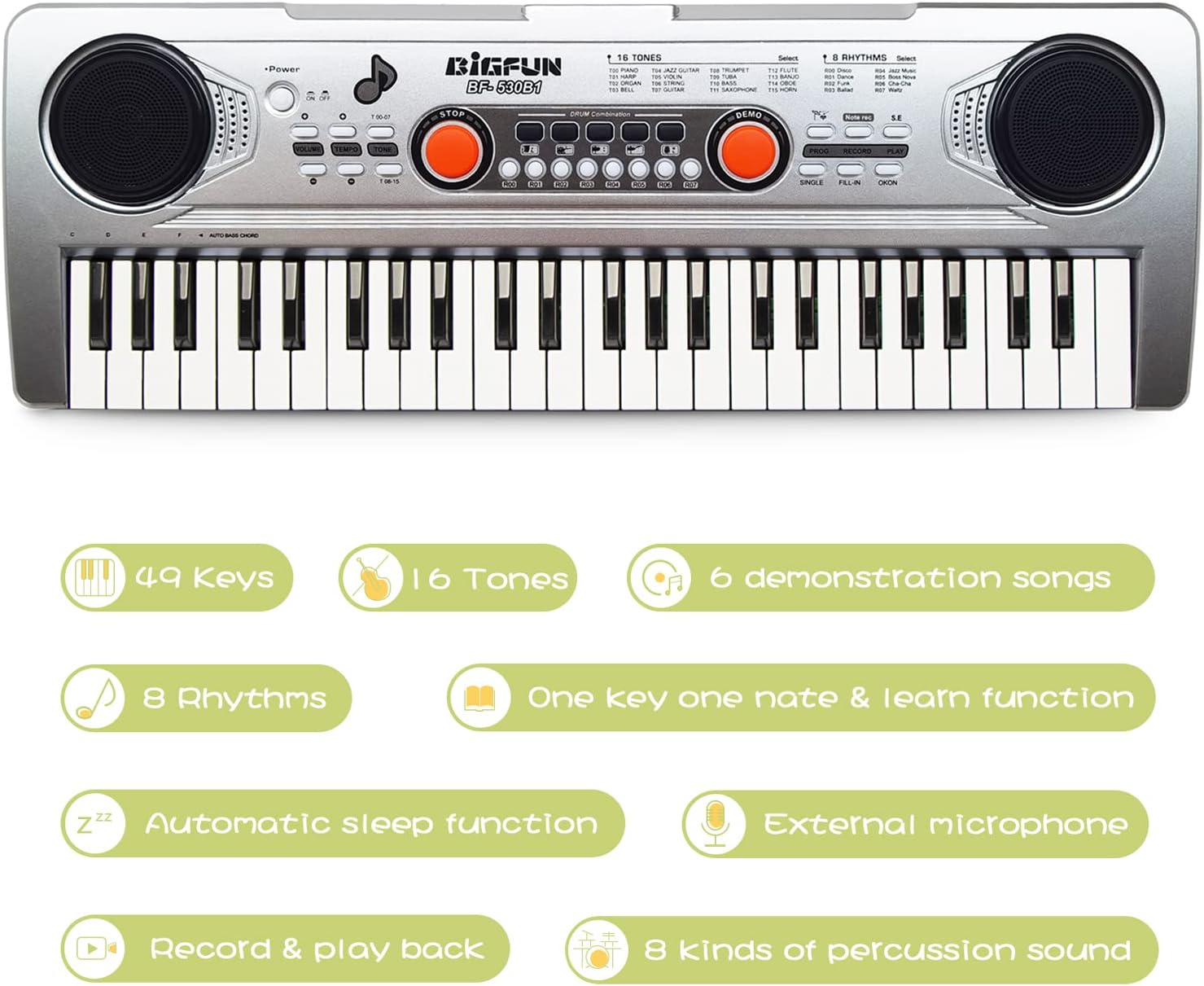 Raimy Piano Keyboard for Kids 49 Keys Portable Keyboard Piano Early Learning Educational Electronic Musical Instrument Toys Gifts for 3 4 5 6 7 8 9 Year Old Boys and Girls (Silver)