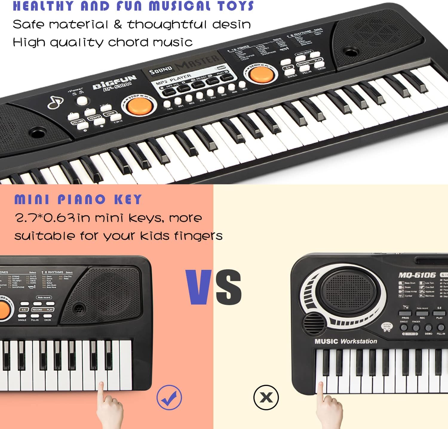 Raimy Piano Keyboard for Kids 49 Keys Portable Keyboard Piano Early Learning Educational Electronic Musical Instrument Toys Gifts for 3 4 5 6 7 8 9 Year Old Boys and Girls (Black)