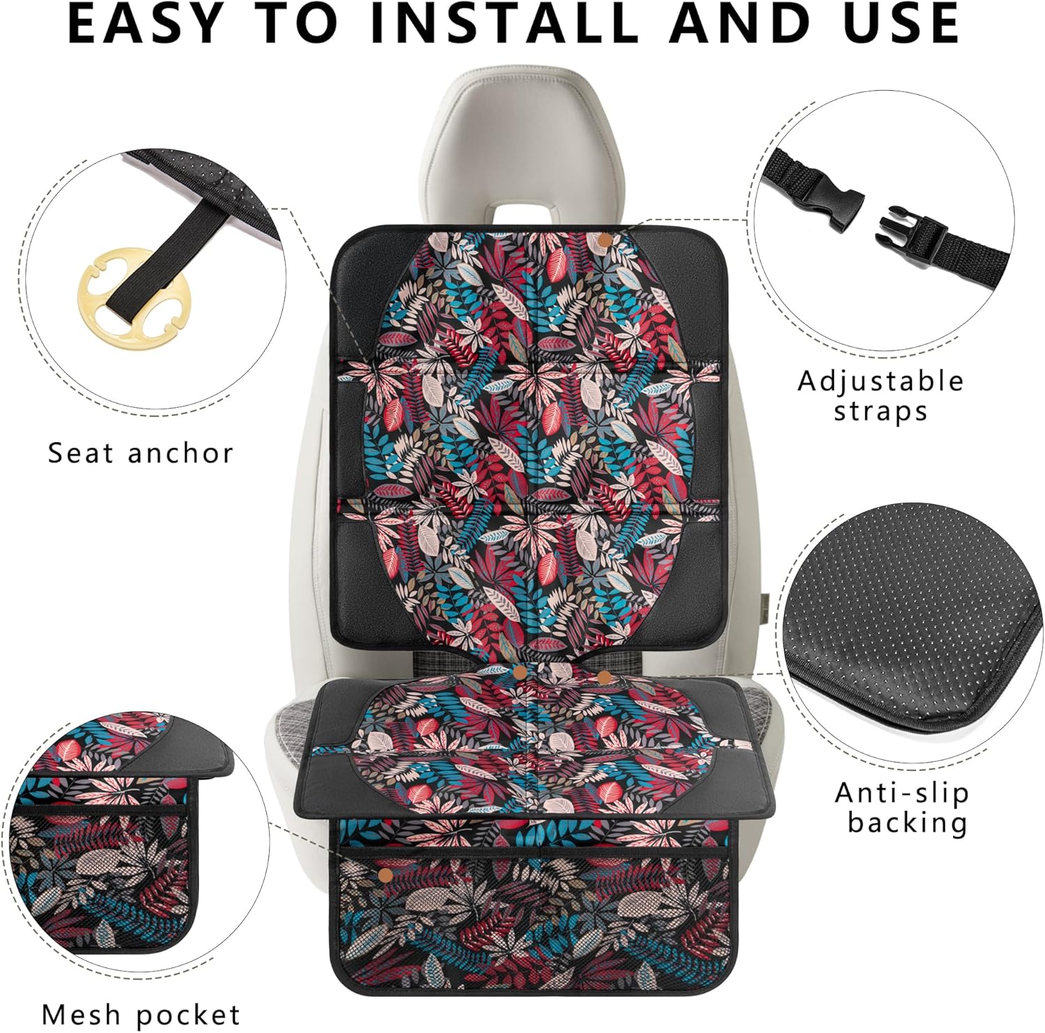 Car Seat Protector for Child Car Seat, 2 Pack Baby Car Seat Covers with Mesh Pockets & Non-Slip Backing 600D Durable Seat Protector Under Baby Car Seat for Car Back Seat (Red Leaves, Large)