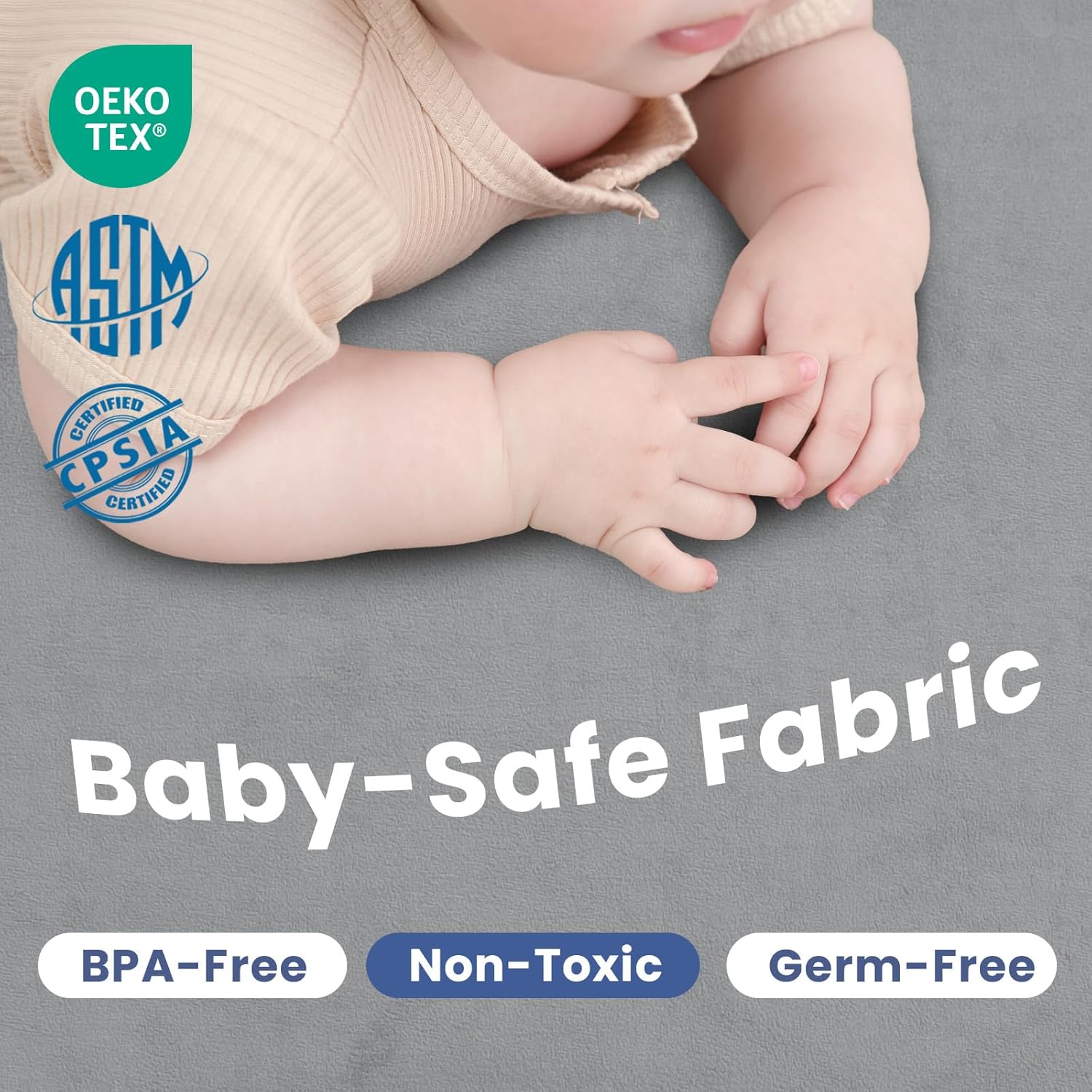 - 【Safe & Certified for Babies】Our baby play mat is designed with safety as the top priority. Certified by OEKO-TEX fabric standards and tested to meet CPSIA and ASTM requirements, this kids play mat is free from harmful substances. Parents can choose with confidence, knowing their little ones are playing on a non-toxic, ultra-soft crawling mat.
