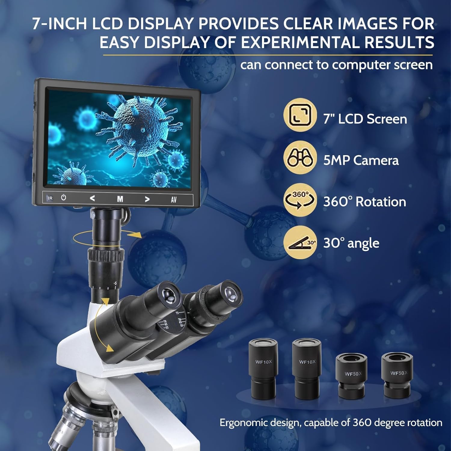 40X-5000X Compound trinocular Microscopes trinocular for Adults,Display Screen, Microscope Accessories, Microscopes for School Laboratory Home Education Abbe Condenser