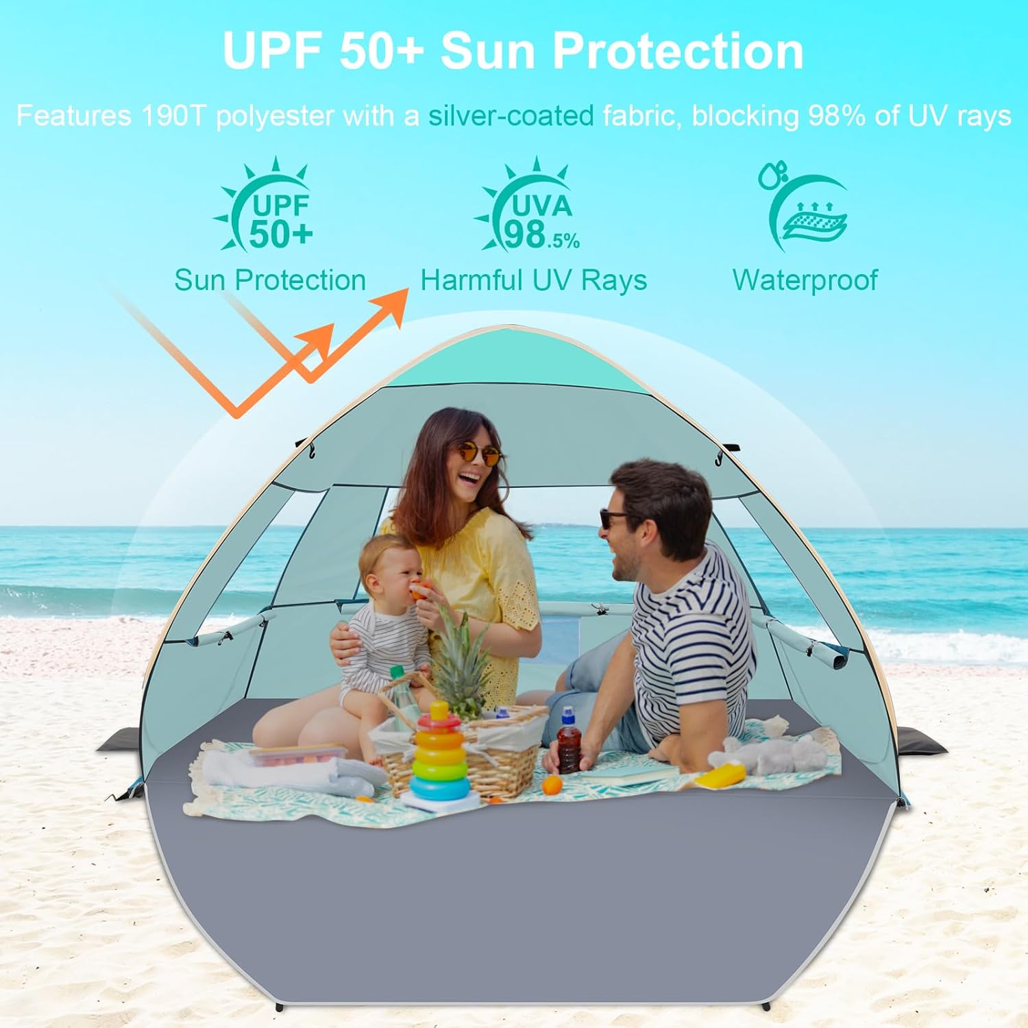Gorich Easy Pop Up Beach Tent for 3-4 Person, UPF 50+ UV Protection Beach Umbrella Sun Shelter, Portable Lightweight Shade with Easy Foldable & Instant Setup