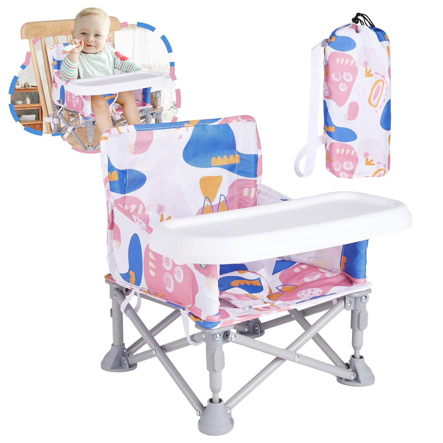 Portable Booster Seat, Toddler Baby Seat with Tray for Dining Table Compact Floor Chair for Camping Lawn Beach Babies Travel 6-36 Months