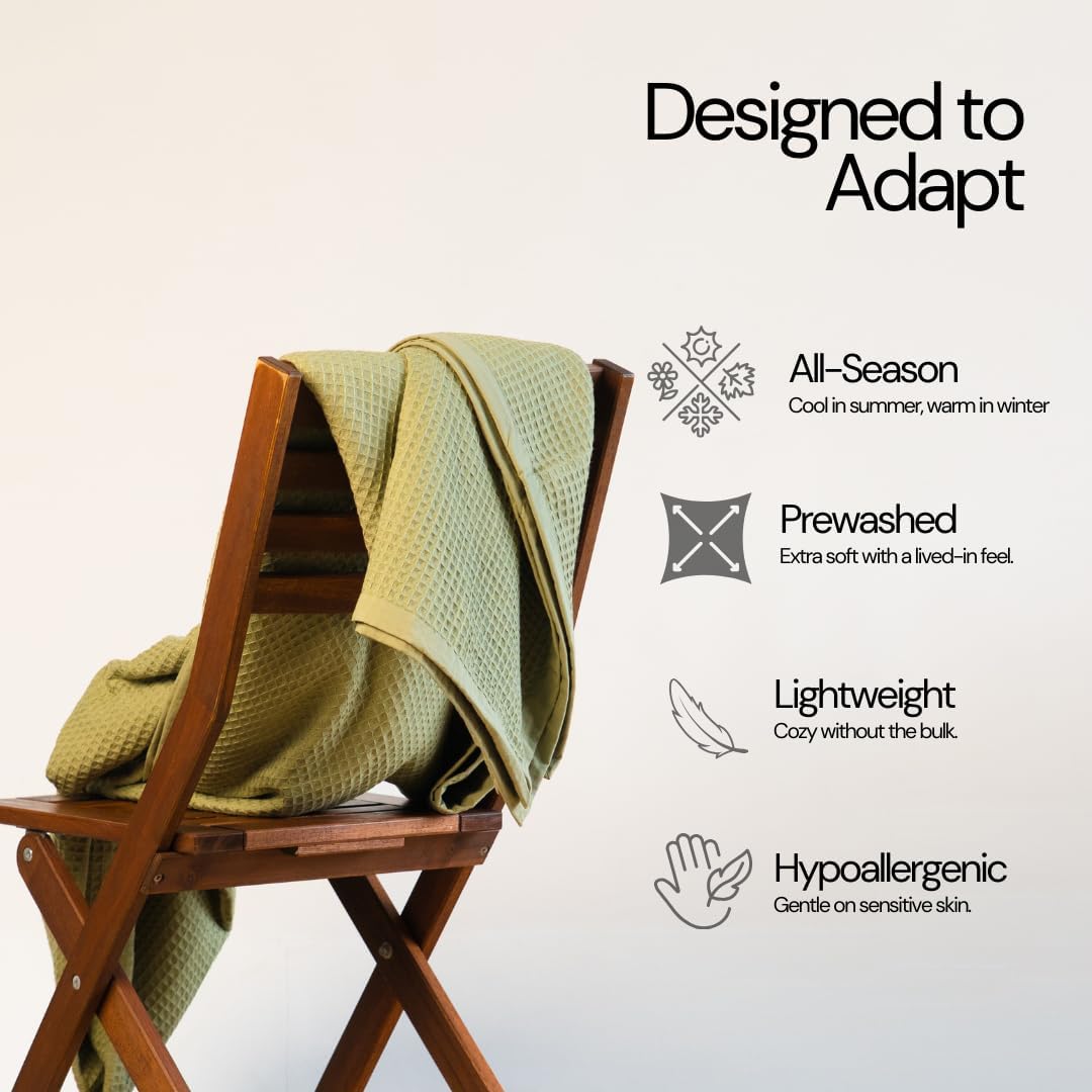 - Premium Material: Indulge in the luxury of our Pre-Washed Waffle Weave cotton throw blanket with firmly sewn ends & mitered corners for aesthetic look as your home decor. Woven with care for exceptional softness and breathability, it's also perfect as a throw blanket for couch or sofa bed providing lightweight comfort. Its breathable and moisture-absorbing properties promote a comfortable sleep, preventing overheating making it an ideal choice for throw blankets for bed and living room decor.