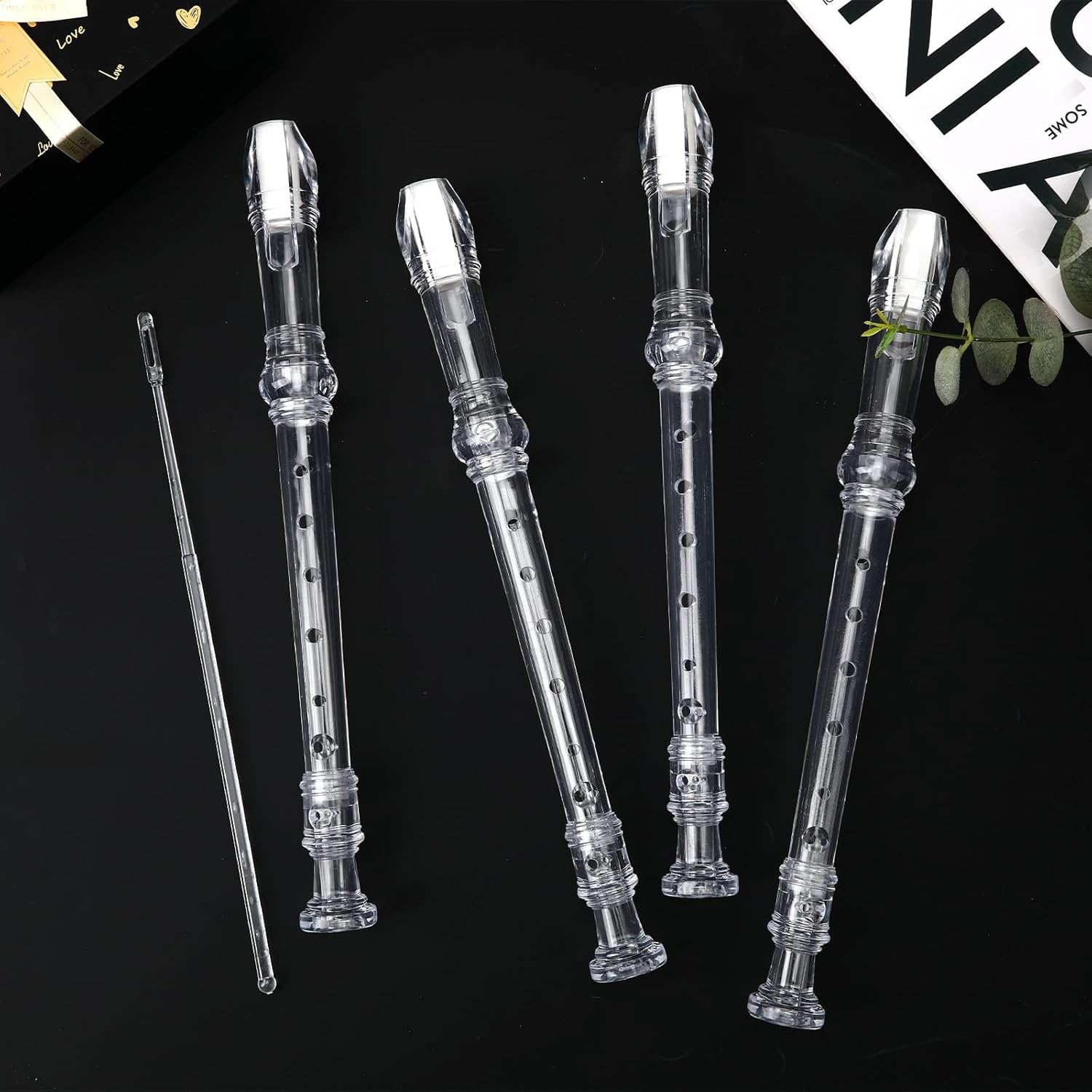 SANNIX 4 Pack Recorder Instrument 8 Hole German Style Soprano Recorder for Beginner Recorder With Cleaning Rod School Student Music Instrument (Clear White)