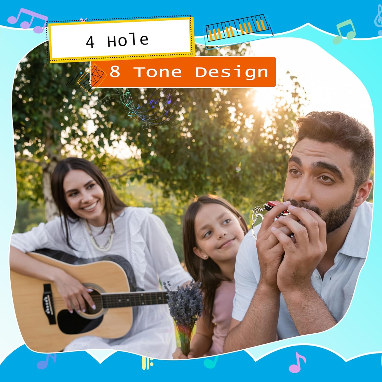 - 【Designed for Convenience】Mini harmonica key chain features a 4 hole, 8 tone design, Size: about 3.5 x 1.2 x 1cm/ 1.4 x 0.5 x 0.4inches, its compact size makes it easy to carry, allowing kids and music lovers to enjoy their passion for music anywhere, anytime